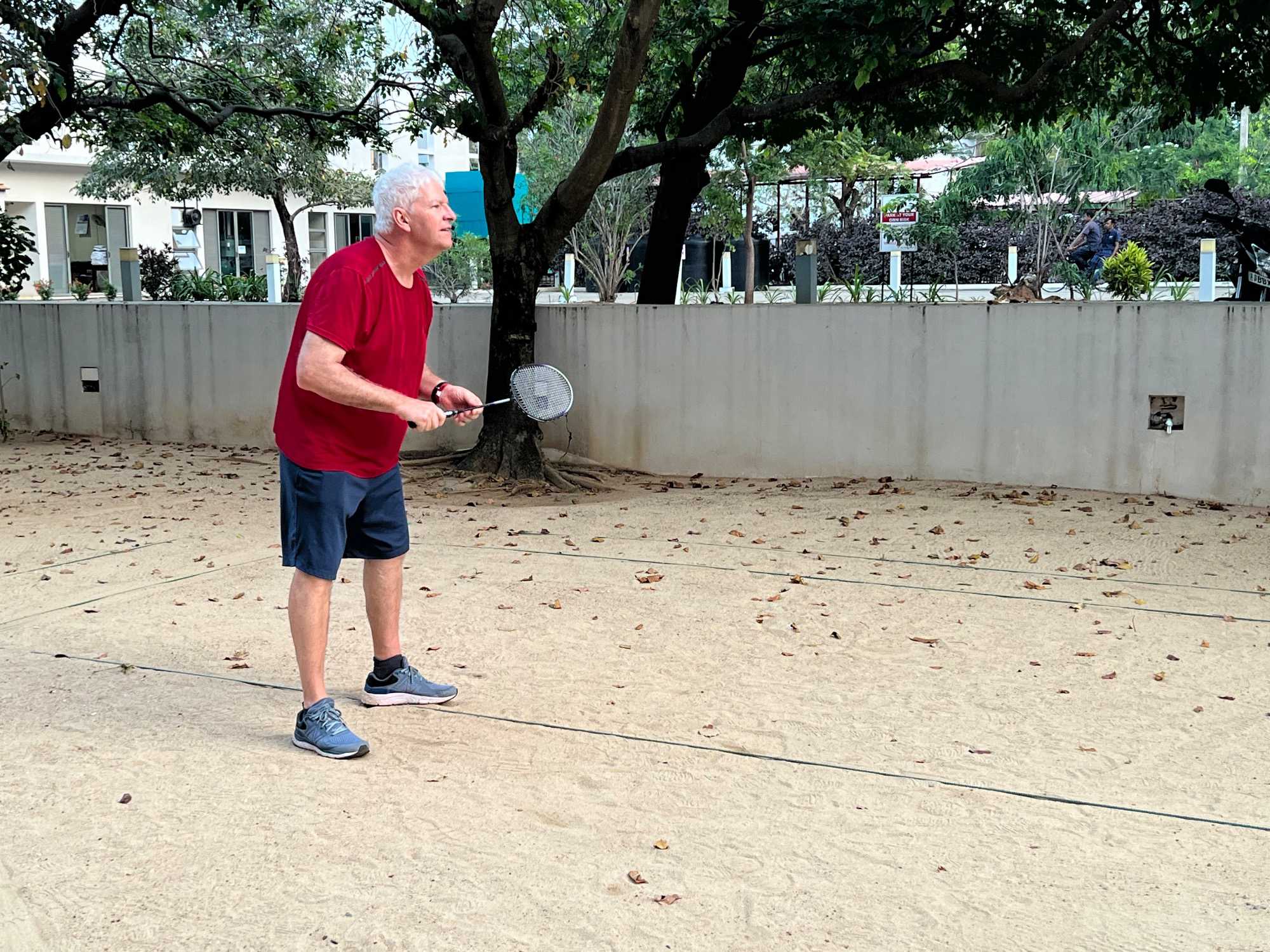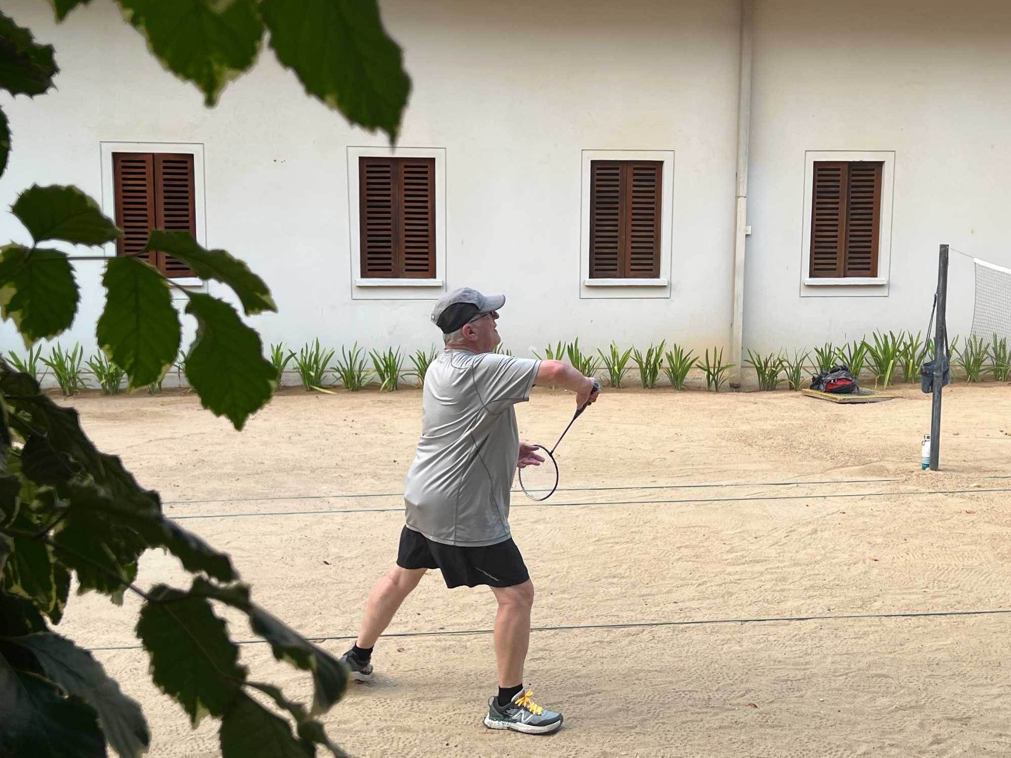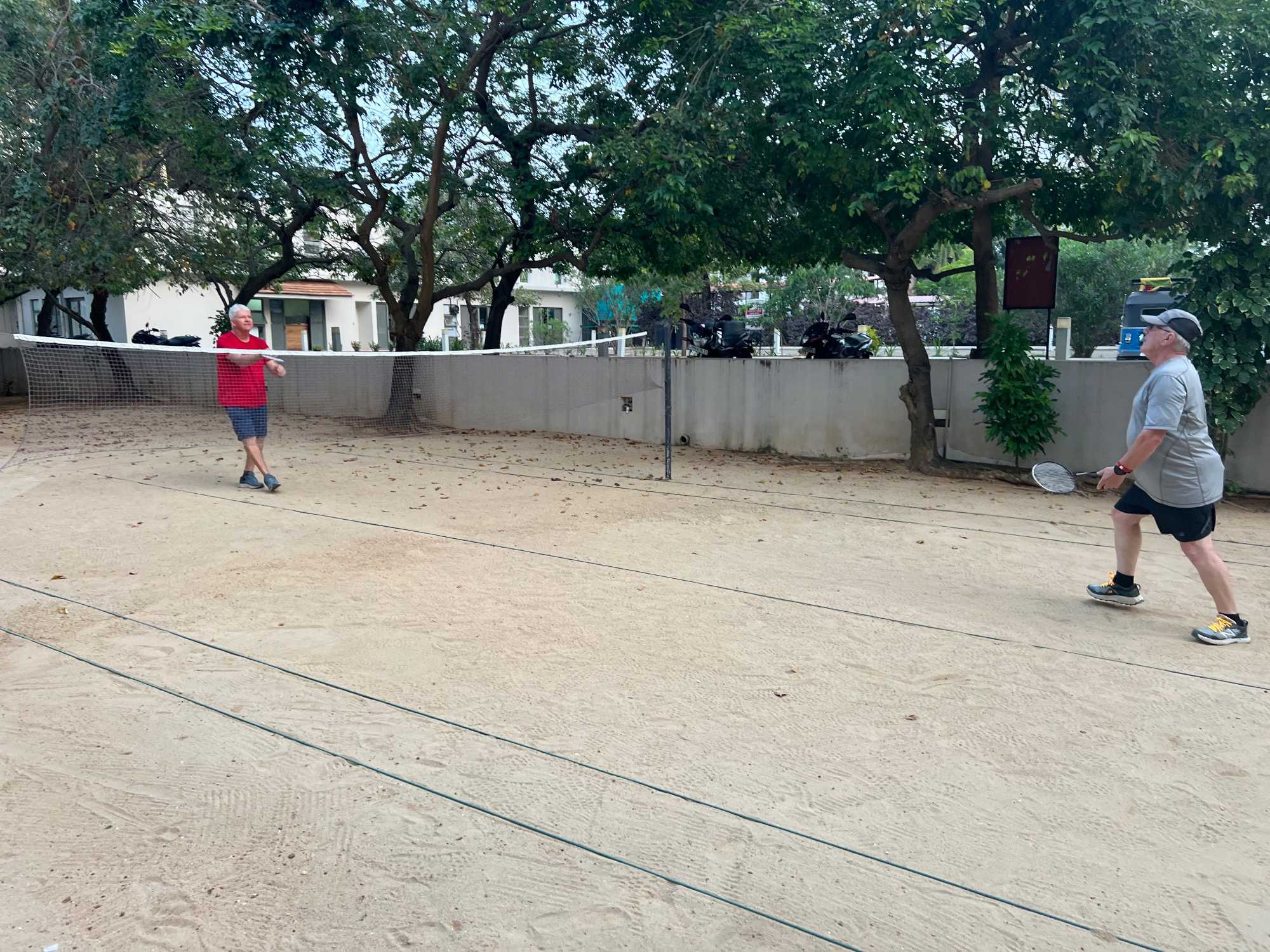 Un terrain de badminton est aussi disponible sur les lieux. Jacques et moi en profitons pour jouer un peu, aussi en fin d’après-midi. Nous jouons à l’abri du vent mais c’est quand même très humide. Bernard se joint à nous pour échanger quelques coups. Denis Bouchard fait ses longueurs de piscine. Plusieurs lisent sur la plage. Bref, nous passons la journée selon ce que nous avons le goût de faire.