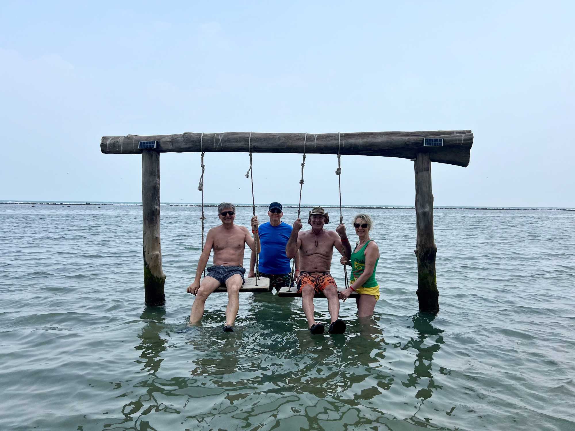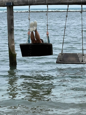 Ce matin, nous sommes plusieurs à avoir marcher sur la plage. Nous avons même trouvé une balançoire dans l’eau: bien sûr les enfants se sont amusés!