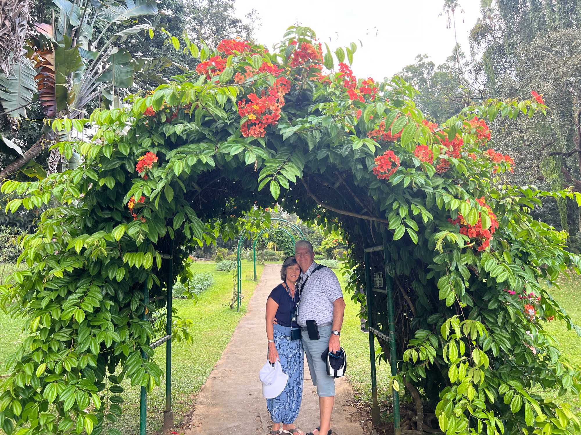 Puis, nous reprenons la route vers Kandy. Notre guide nous propose d’aller visiter le jardin botanique aujourd’hui au lieu de demain, car nous avons du temps est il fait très beau. Nous nous préparons à découvrir l'un des joyaux botaniques du Sri Lanka : les Jardins royaux de Peradeniya. Ce jardin est considéré comme le plus beau du pays et l'un des plus impressionnants au monde. Le parc d'agrément royal aménagé à la fin du XVIII' siècle a été transformé en jardin botanique par les Britanniques en 1821. La collection compte aujourd'hui plus de 4 000 spécimens, offrant un excellent aperçu de la flore insulaire, enrichie de quelques végétaux provenant d'autres régions du monde. Sur 60 hectares de terres luxuriantes, les orchidées éclatantes, les arbres majestueux (tellement hauts qu’ils pourraient appartenir à Avatar!) et les arrangements floraux nous comblent de bonheur. Du bonbon pour les yeux! Autrefois réservé exclusivement à la royauté de Kandy, ce jardin est aujourd'hui ouvert à tous, et c'est avec une joie immense que nous nous y sommes promenés.