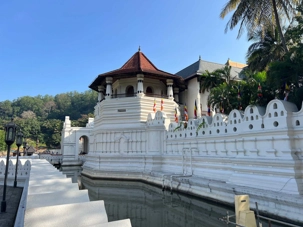 En après-midi, Jaya nous amène nous promener dans les rues de Kandy, l'ancienne capitale royale des Cinghalais. Nichée à 500m d'altitude, au creux de vallons luxuriants, la capitale du dernier royaume cinghalais à avoir résisté aux Britanniques (en 1815) est un important foyer culturel, doublé d'un lieu saint. Nous commençons par une visite du marché local, véritable cœur vibrant de la ville. Là, nous nous promenons parmi les étals d’épices, de textiles colorés et d'artisanat local. Nous prenons ensuite une pause à l’hôtel de la reine (Queen’s Hotel).
