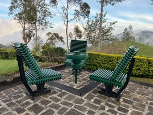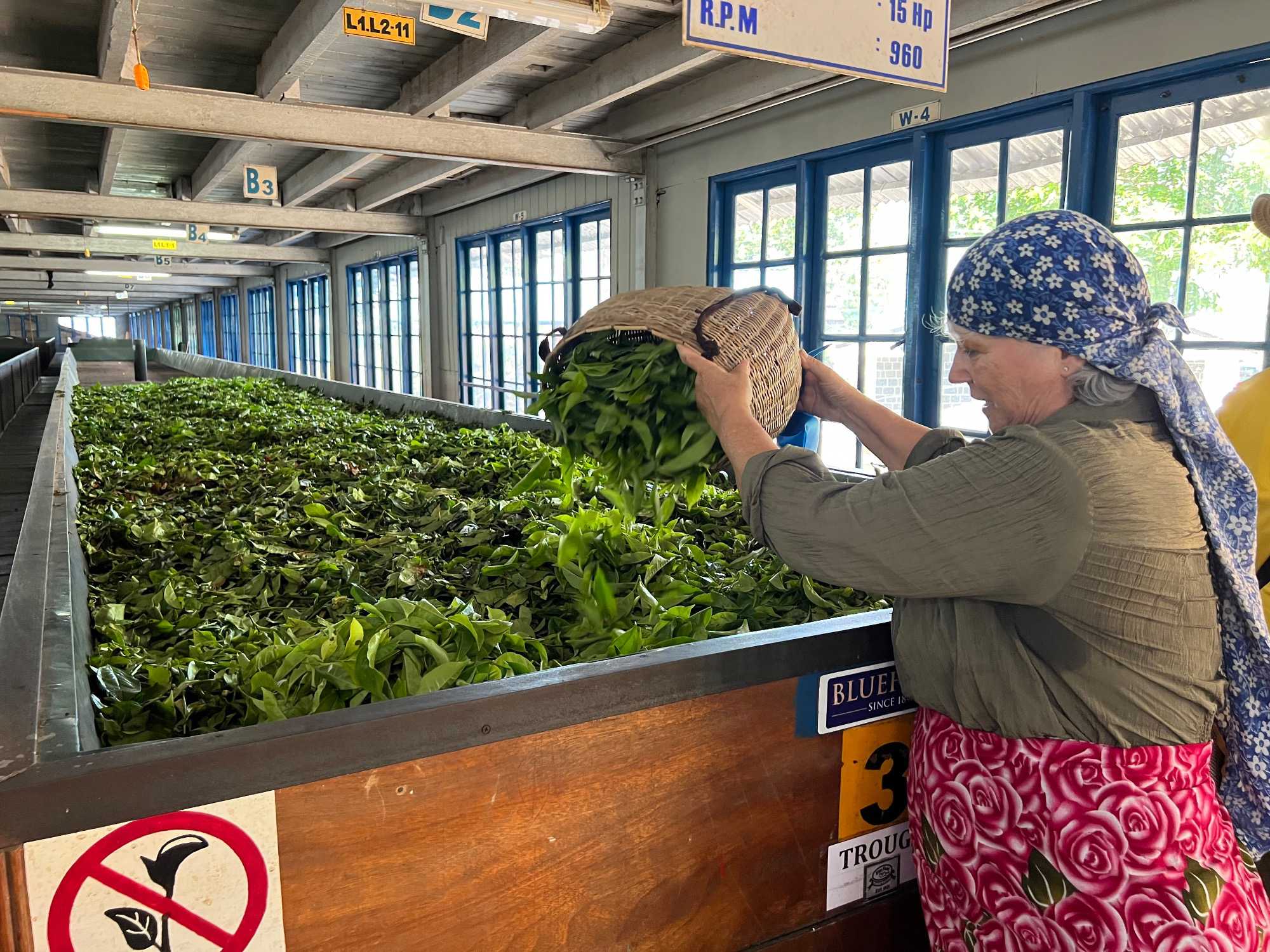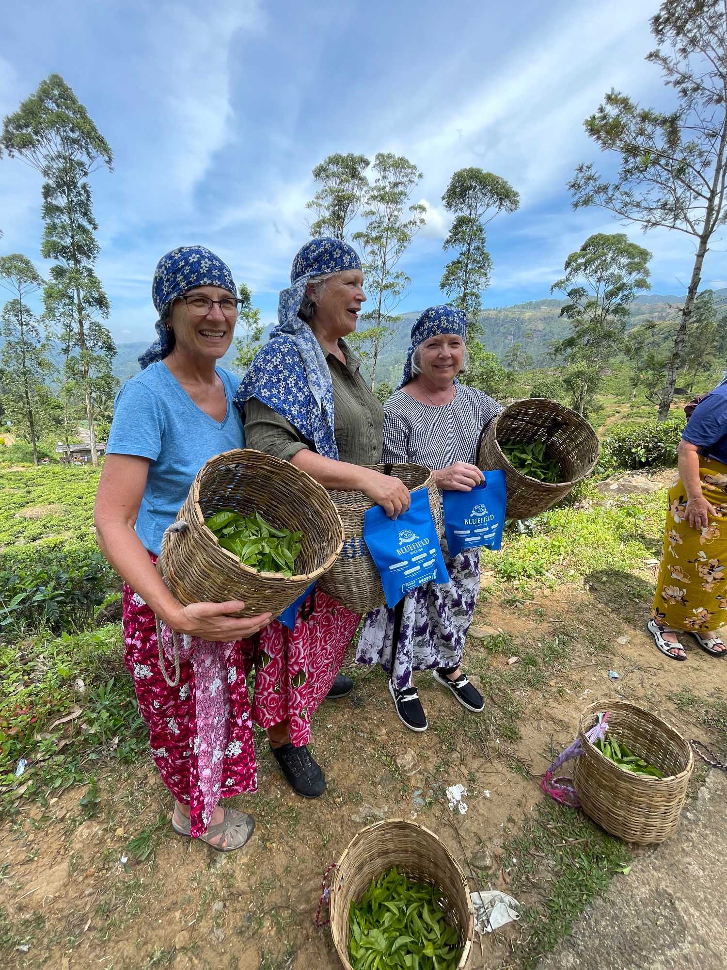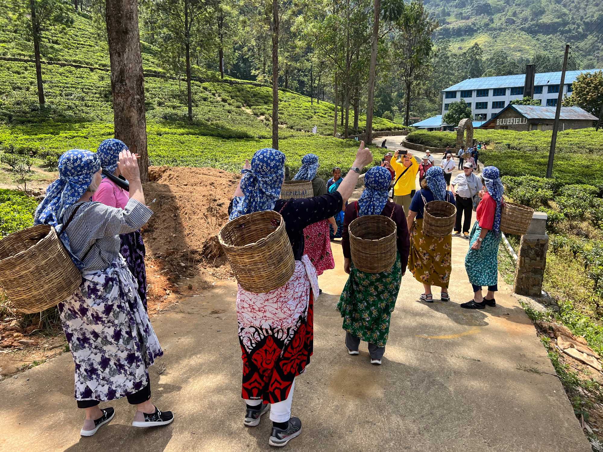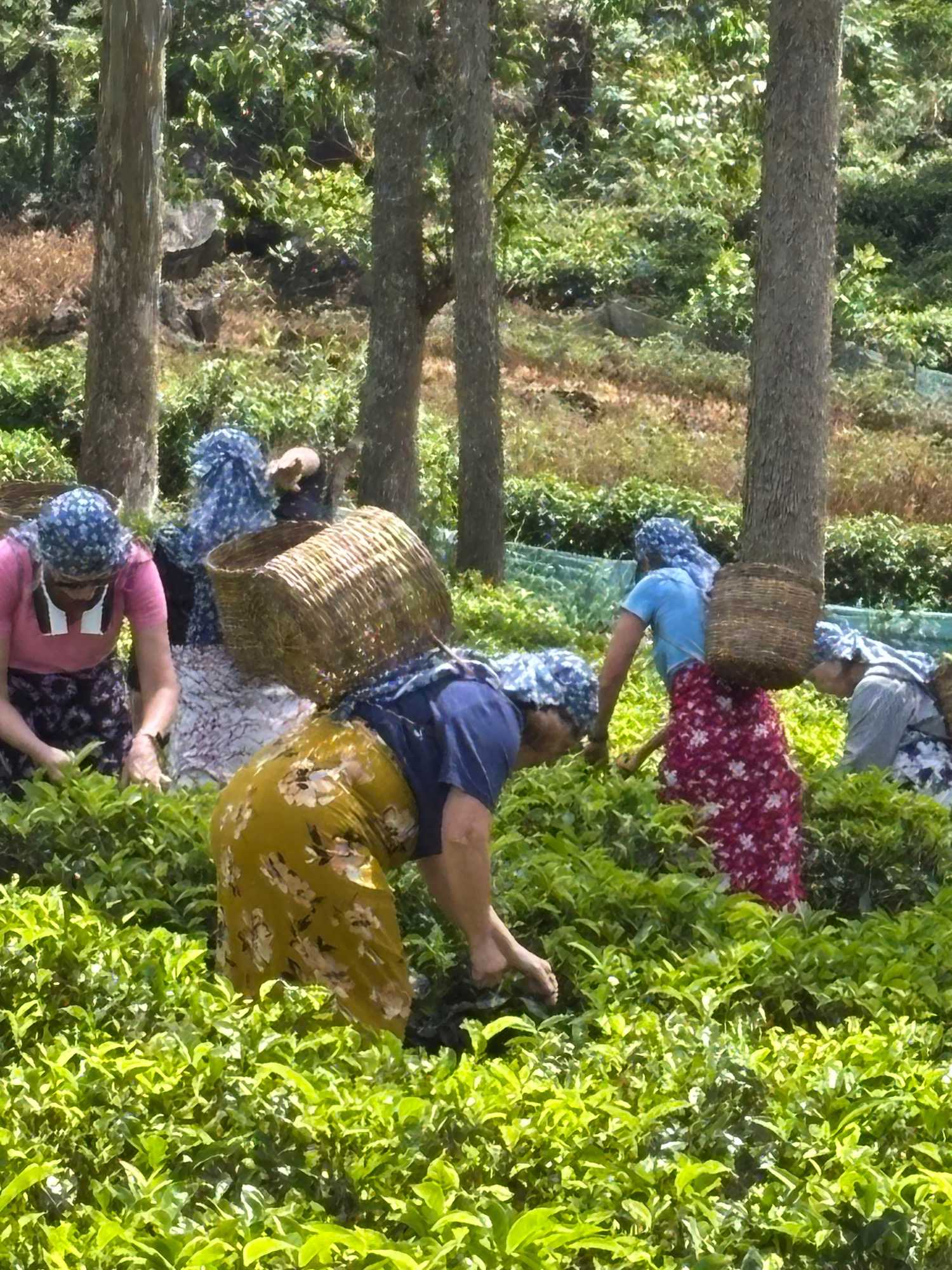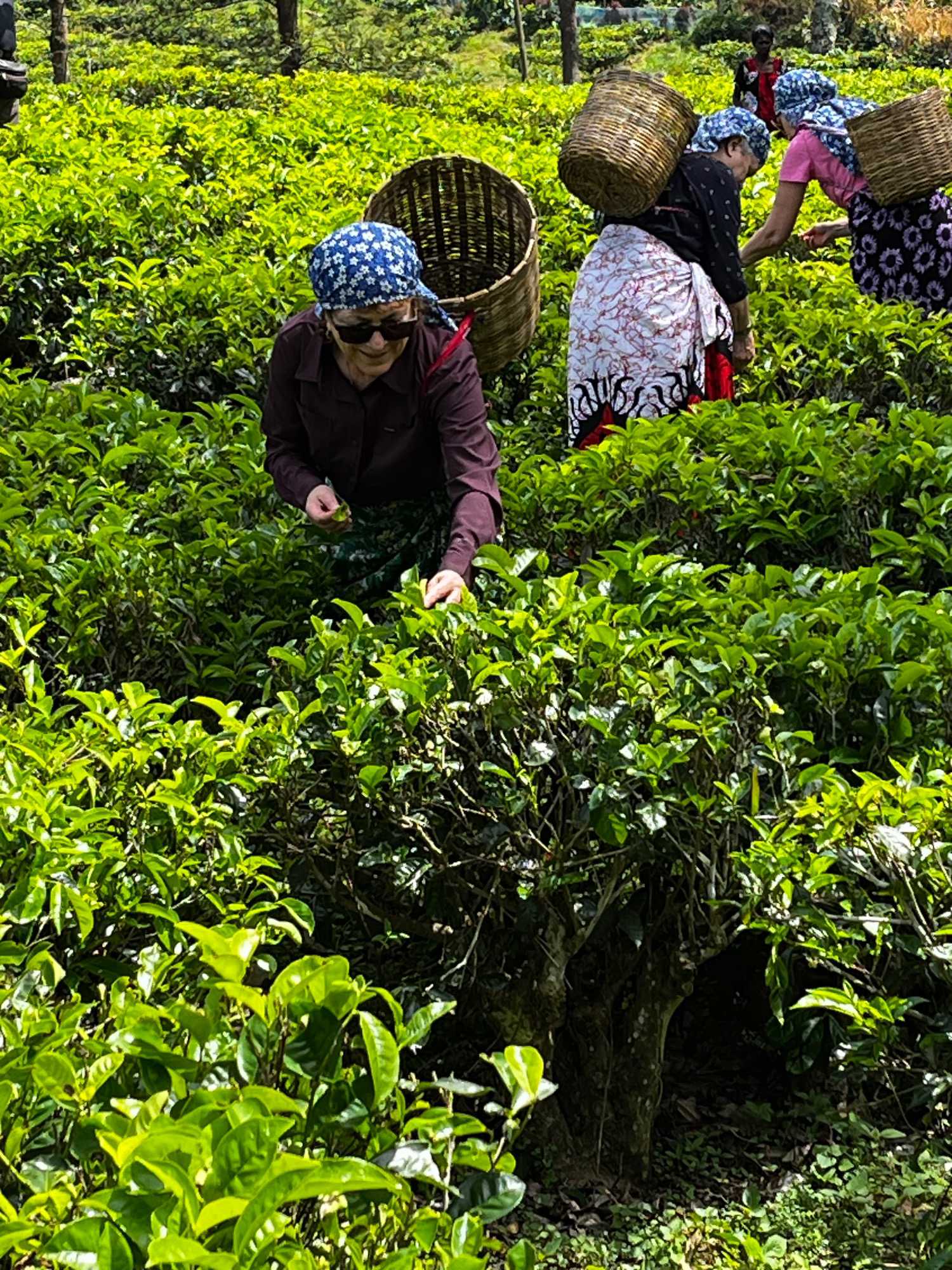 On s’arrête à une manufacture de thé pour en faire la visite. Nous avons la chance de vivre une expérience unique. Mesdames, c’est à nous de jouer ! Avec un panier placé sur nos épaules, nous devons récolter l'or vert, cueillant délicatement les jeunes pousses et leurs bourgeons. L’atmosphère est chargée de compétition amicale, les hommes nous encouragent avec des sourires complices, et nous nous lançons dans cette tâche ancestrale avec tout notre cœur. L’enthousiasme est palpable, et c’est avec joie que nous terminons notre récolte. Nous avons 15 minutes pour en ramasser le plus possible. Une fois cette activité terminée, une dame soupèse nos paniers pour déterminer laquelle d’entre nous en a ramassé le plus. Et la gagnante est … Carole, suivi de près par Jeanne, et de toutes les autres. Bravo mesdames! Nous avons beaucoup apprécié cette activité. Cela nous fait réaliser tout le travail qu’il y a derrière une simple poche de thé!