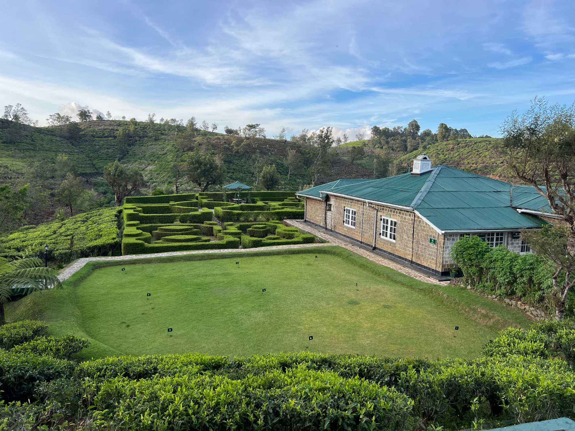Enfin, après une journée aussi amusante, nous arrivons à notre hôtel Heritance Tea Factory, un lieu aussi unique que magique. Cet hôtel, anciennement une usine de thé, est niché dans les montagnes verdoyantes. On ne peut y accéder avec notre bus, la route est trop sinueuse et étroite. Une navette de l’hôtel vient nous chercher à environ 4 km de l’hôtel. WOW! Quel hôtel! Un autre gros coup de coeur pour nos voyageurs. C’est un véritable retour aux racines du thé, car cet hôtel fut jadis une manufacture de thé. L’extérieur de l’hôtel vaut aussi une belle promenade: les arbres sont taillés en forme d’animaux, il y a un terrain de mini-golf, un labyrinthe végétal,… C’est vraiment très beau et relaxant étant situé parmi toutes les plantations de thé environnantes.