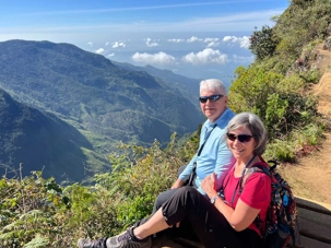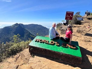Nous parcourons le sentier appelé « World's End » (la fin du monde). Un sentier de 9 km, et un peu plus si on compte notre descente pour nous rendre à la belle cascade d’eau. Nous traversons prairies et boisés et arrivons au belvédère du World's End puis celui du Mini World's End, promontoires qui offrent, par-delà un précipice de plus de 800m, l'un des panoramas les plus grandioses de l’île. Nous avons adoré cette randonnée. Ce fut un beau moment pour apprécier la nature.