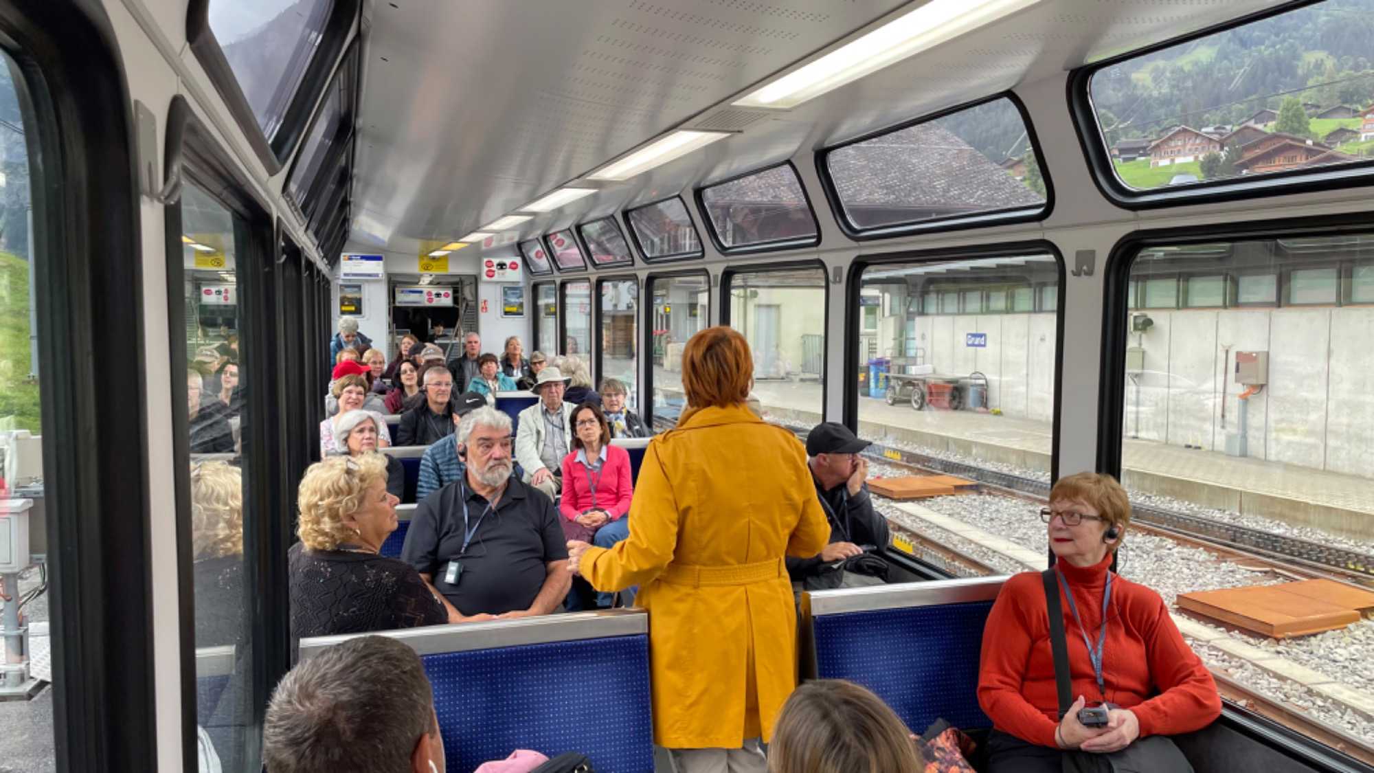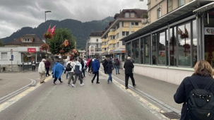 En après-midi nous sommes descendus à Lauterbrunnen via la Kleine Scheidegg, col ferroviaire suisse entre l’Eiger et le Lauberhorn dans l’Oberland bernois situé à la frontière des communes de Lauterbrunnen (Wengen) et de Grindelwald, pour continuer vers Interlaken, agréable station touristique située entre deux lacs : Brienz et Thoune. Une courte visite guidée, un peu de temps libre et nous filons en direction de l’hôtel afin de se préparer pour notre souper de groupe.