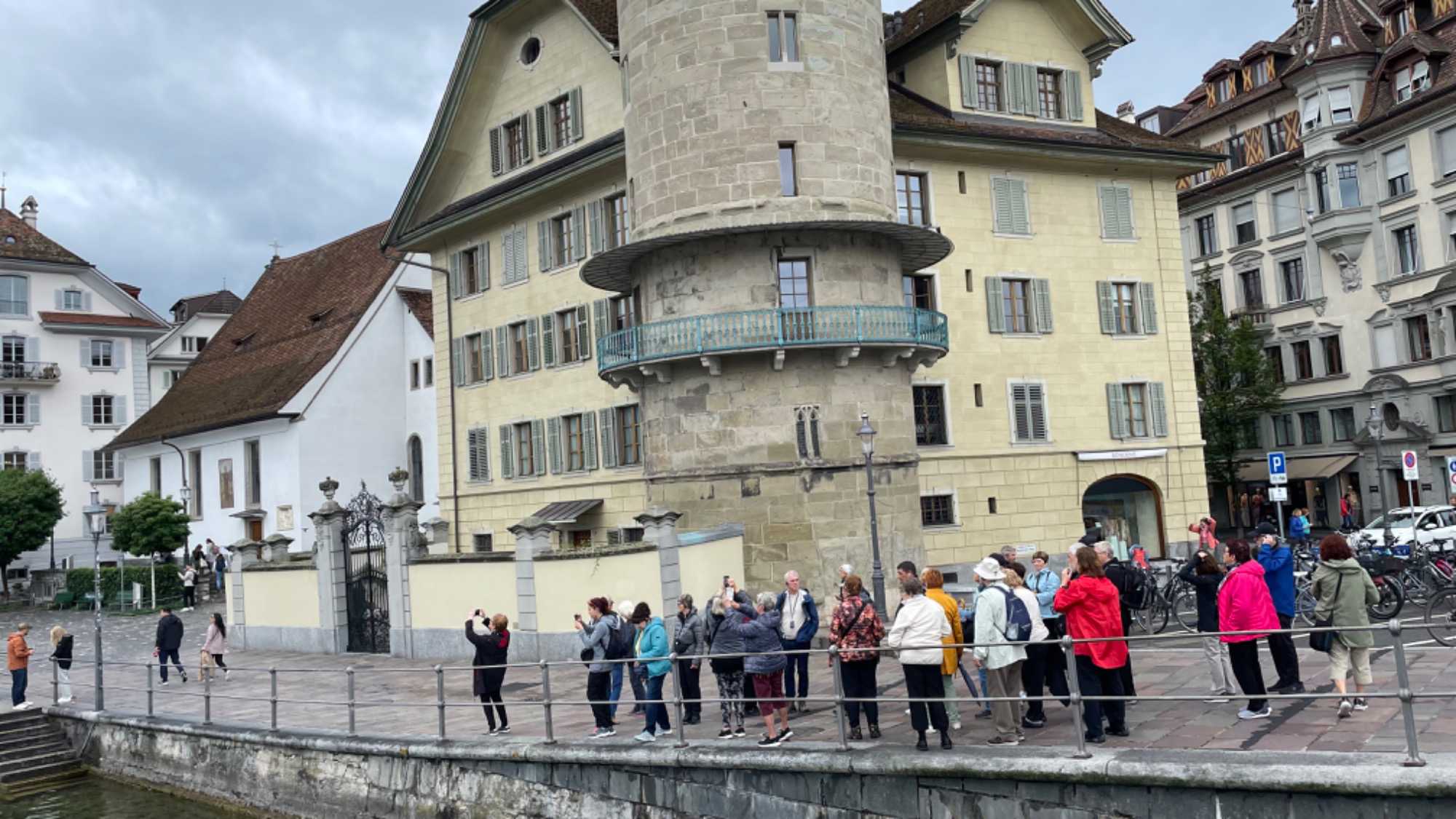 Cet après-midi, visite guidée de Lucerne mais avant, un bon déjeuner (dîner) dans un restaurant typique du canton. En Suisse, le pays est divisé en canton qui est en fait une région administrative. Vers 14 heures, départ avec nos audioguides qui nous permettent d’écouter notre guide Claude sans être obligé d’arrêter le groupe pour donner les explications. Nous sommes aussi beaucoup plus à l’aise pour prendre nos photos. Elle nous conduit dans les rues historiques de Lucerne, pour vous dire qu'elle est intéressante, elle a donné le choix aux voyageurs de la suivre ou de prendre ce temps pour aller magasiner croyez-le ou non, tout le groupe l'a suivi pour terminer au Lion mourant.