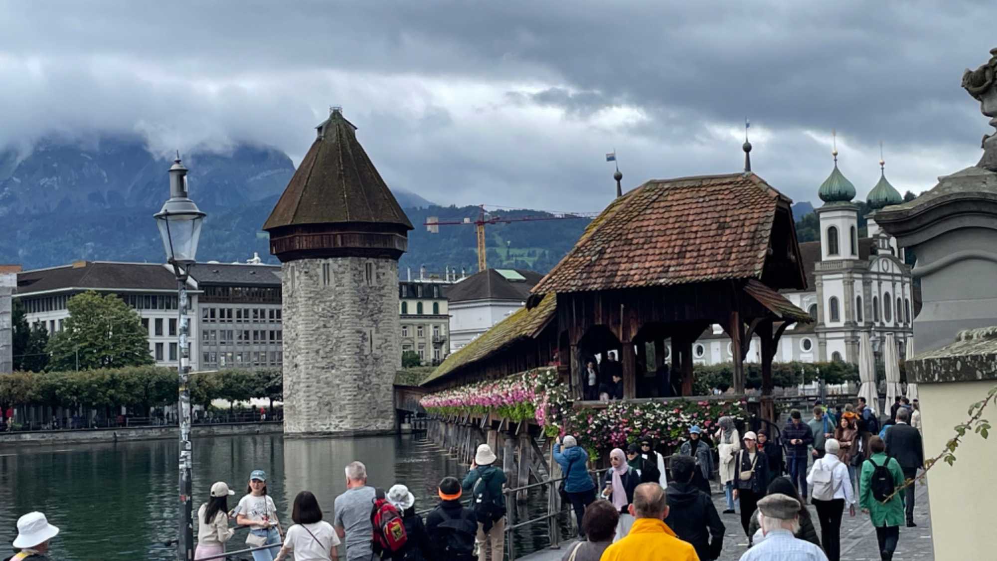 Si tous les chemins mènent à Rome eh bien toutes les voies ferrées mènent à Lucerne. C’est pour vous dire qu’il y en a beaucoup. C’est normal, cette ville date entre 1180 et 1200 ans et est habitée depuis les temps préhistoriques. Elle possède des attractions touristiques célèbres dans le monde entier entre autres le pont couvert en bois dont le Kapellbrücke qui est le plus vieux en Europe, devenu indissociable de la cité de même qu’une tour d’eau octogonale qui n’en est pas une mais bien une ancienne prison. La ville a su préserver son histoire par ses habitations, de belles constructions qui datent des années 1600, une vraie beauté.