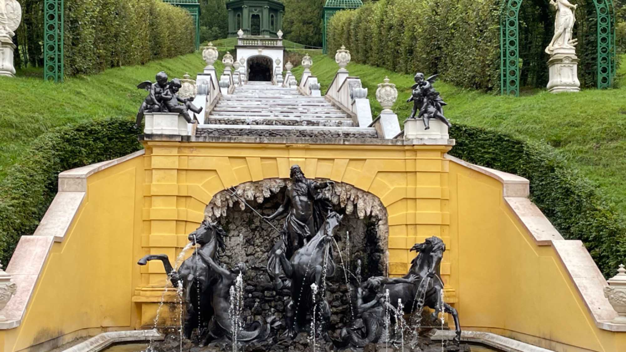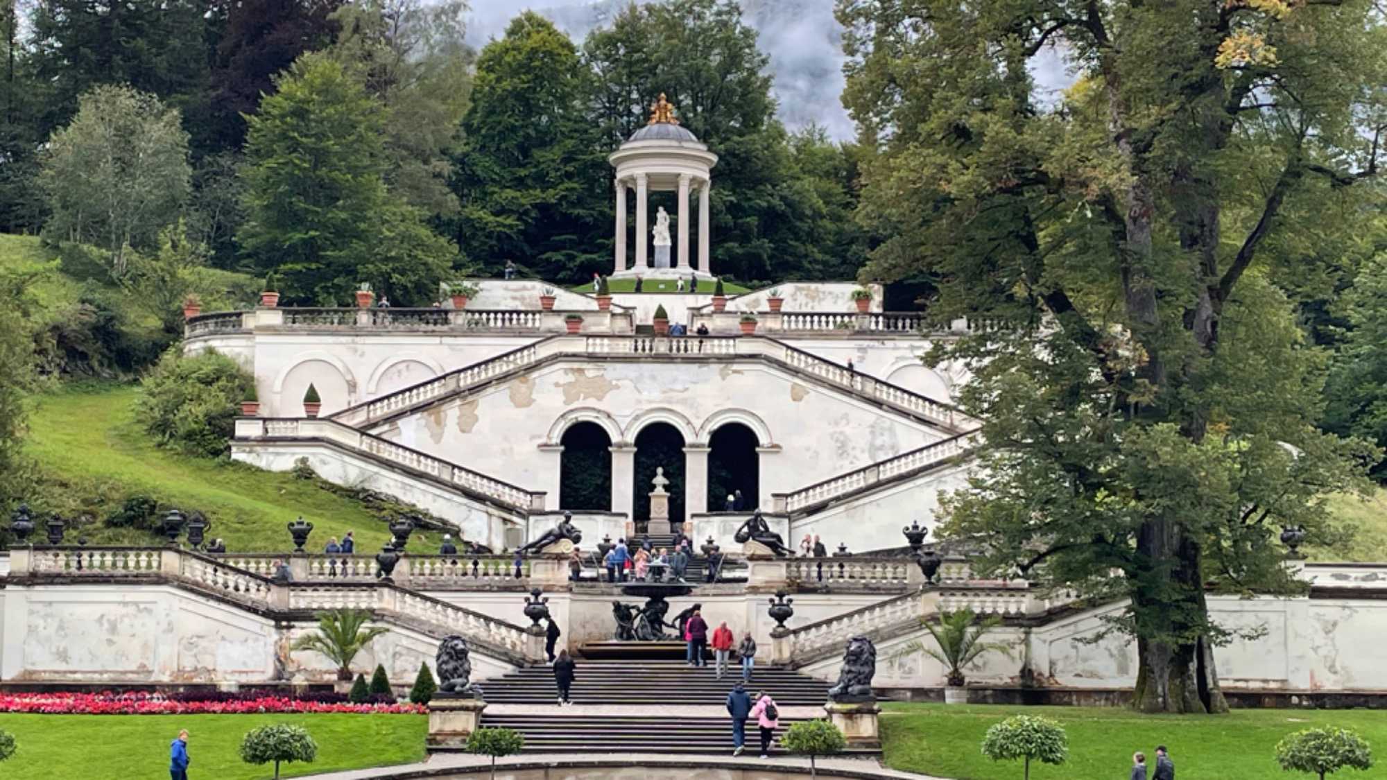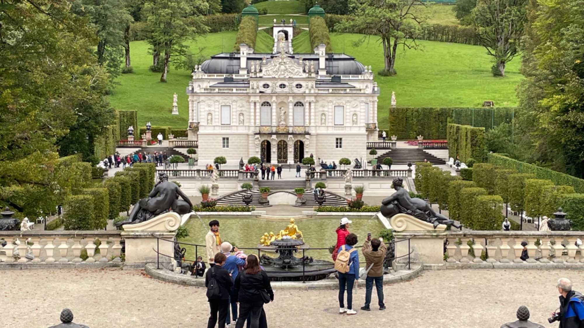 En route vers le château de Linderhof, reproduction miniature du Trianon de Versailles, que nous avons visité. Ce château fut construit par Louis II de Bavière également, tout un domaine! Il fut le seul à être terminé de son vivant, étant son endroit préféré. Il est visité par des milliers de touristes chaque année. Après cette visite, nous avons une bonne idée de ce que pouvait avoir l’air les châteaux de l’époque, puisque c’en était un et pas n'importe lequel