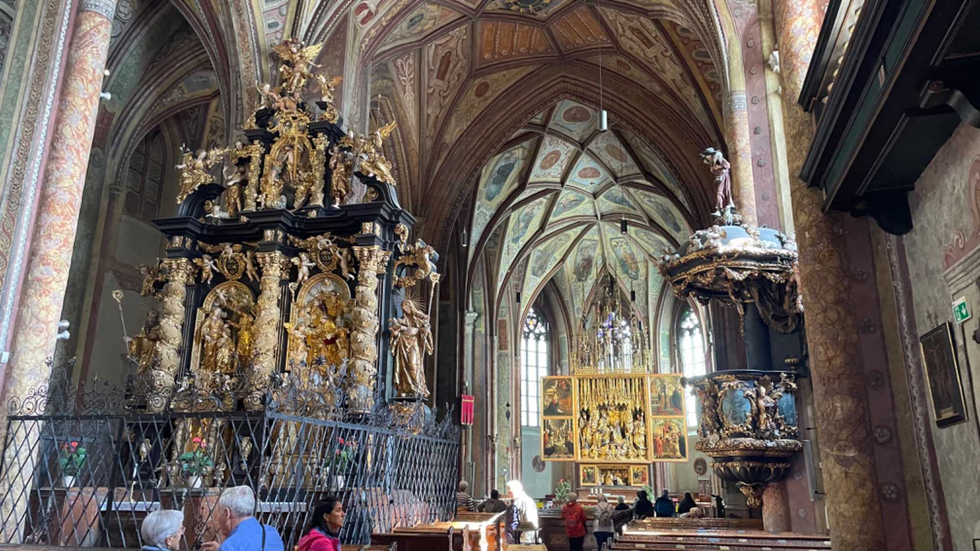Cette marche nous donne faim. Nous nous rendons à St-Wolfgang pour dîner dans le légendaire hôtel romantique du Cheval Blanc. Par la suite, petite visite de l’église de la ville et petit arrêt pour admirer le retable de Michael Pacher, chef-d’œuvre de l’art gothique.