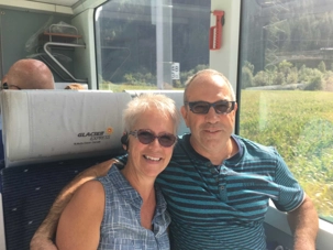 L’audacieux parcours à travers la vallée de l’Albula, les 291 ponts et 91 tunnels et par-dessus tout, les légendaires viaducs, sont aujourd’hui encore considérés comme des chefs-d’œuvre de la technique ferroviaire. On a rarement vu un train qui traverse les cols à une altitude comme nous avons vu aujourd’hui. On nomme cette route l’Oberalpass à 2 044 m (6 670 pieds), situé dans les Alpes suisses entre les Alpes glaronaises et les Alpes lépontines. Ce col permet de relier la vallée du Rin à Andermatt. On y voyait des alpages; ce sont des vaches et des bœufs d’une forme olympique qui broutent l’herbe là où se termine la végétation. Un spectacle hors du commun! Le train circulait à la hauteur des pare-avalanches. Les régions parcourues sont connues par les skieurs soit Davos et St-Moritz. C’était la deuxième fois que nous prenions un train depuis le début du voyage, rappelons-nous que le premier était à crémaillère. Celui-ci date de 1930.