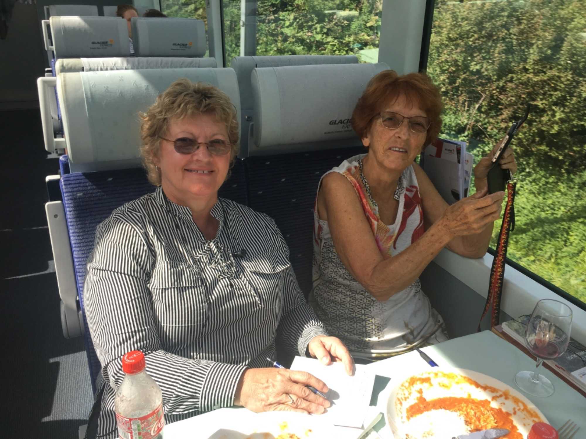 Une aventure extraordinaire nous attendait, prendre un train mais pas n’importe lequel : le Glacier Express. En partance de Brigue, ce train luxueux est le plus lent de tous les trains de la Suisse. L’itinéraire qui relie la haute vallée de l’engadine, la vallée Landwasser et les glaciers valaisans, est ponctué d’innombrables joyaux de la nature comme par exemple, les imposantes gorges du Rhin, les lacs de montagne perchés sur le col de l’Oberalp et la vue sur les pics valaisans de 4 000m d’altitude, c’est magique! Difficile de vous décrire le spectacle tellement c’était joli!