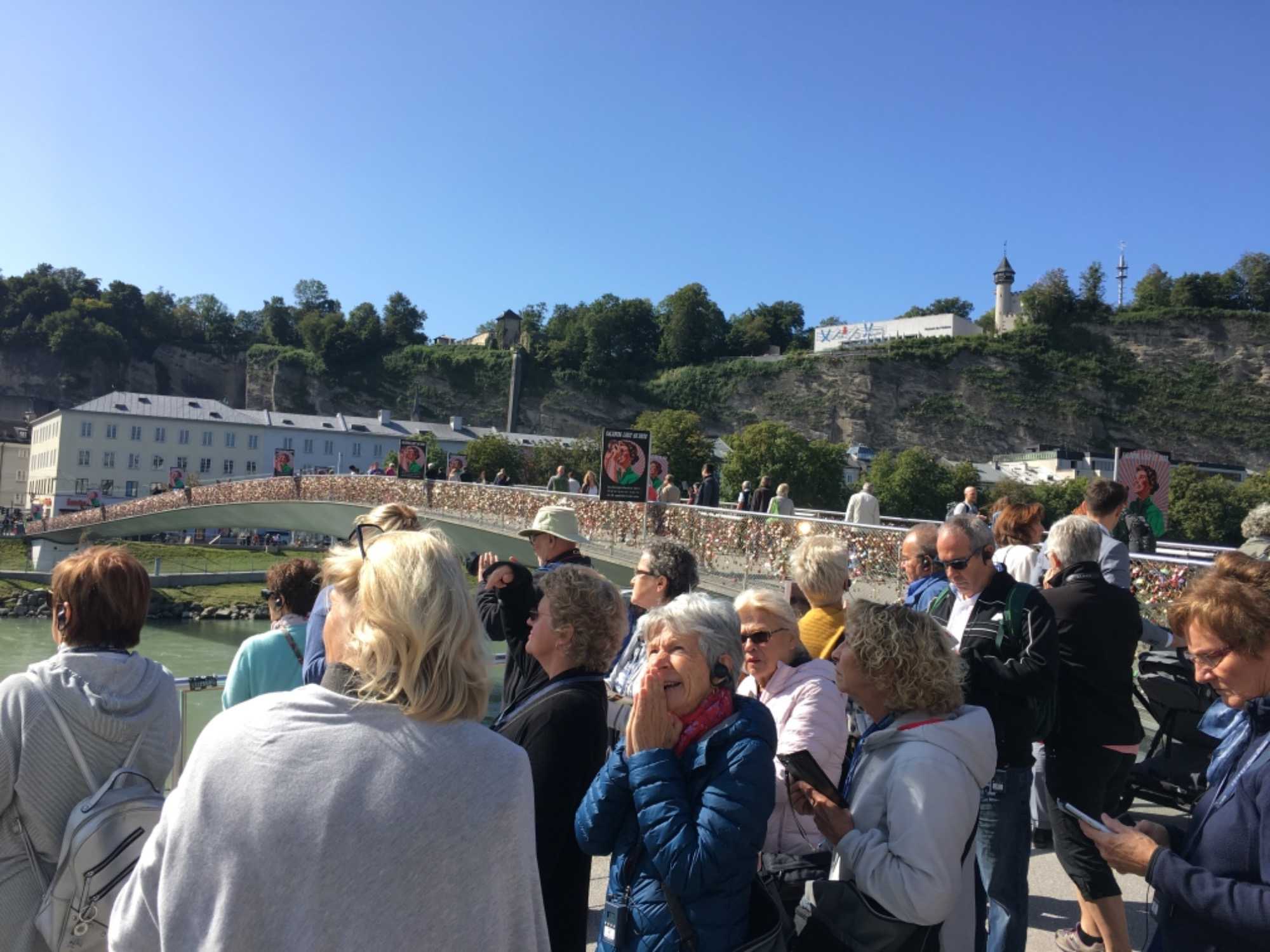 Nous partons à 9h pour rejoindre une guide locale, Helga qui nous fait un tour pédestre de la ville de près de 150 000 habitants. Elle est la 4e ville la plus peuplée du D’Autriche . Il y a 40 églises dans la vieille ville dominée par la forteresse au sommet de la montagne Festungsberg qui fut bâtie en 1077 par l’archevêque Gebhard. Elle est le plus grand château fort en parfait état de conservation d’Europe centrale. Évidemment nous ne pouvons passer sous silence notre visite de la maison natale de Mozart, avec ses petites pièces plutôt sombres et humides. Il est impressionnant de voir la façon dont ils vivaient à l’époque, ici. Ça nous porte à réfléchir et apprécier ce que l’on a, au Québec.