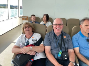 Cet après-midi, environ 10 minutes avant de faire l’embarquement pour notre croisière notre guide Claude, qui savait que j’étais à environ 985 pieds du groupe attendant possiblement des voyageurs (qui ne serait pas arrivé), dit au groupe: Je vais appeler le Capitaine pour lui dire que nous sommes au complet. À peine fini de dire ces mots, Mario pars en courant pour venir m’avertir que tout le monde est pésent. Mario et moi retournons donc au bateau lorsqu'il s’aperçoit qu’il a perdu son billet d’embarquement (un autocollant que l'on cole sur la chemise indiquant que c’est payé), on a cherché tous les deux et ne l'avons pas trouvé. Claude, qui avait un billet supplémentaire pour notre chauffeur dit à Mario: Ne t’en fais pas, le chauffeur n’est pas là je te donne son billet. Parfois lorsqu’on veut aider on se met les pieds dans les plats. Lâche pas Mario, tu es le meilleur.