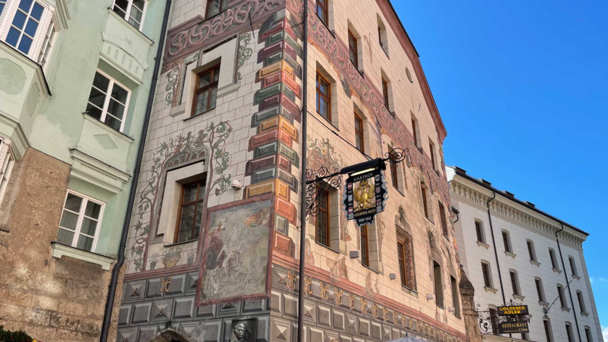 Nous visitons également l’église de la cour où est enterré -en fait il n’y est pas- de Maximilien 1er De l’extérieur, elle est insignifiante et simple, mais l’intérieur est plein d’histoires, de monuments et de trésors. Elle abrite non seulement les monuments artistiques les plus importants du Tyrol, mais aussi un orgue renaissance rare et d’importants tombaux. La vieille ville est charmante, en particulier son petit toit d’or!