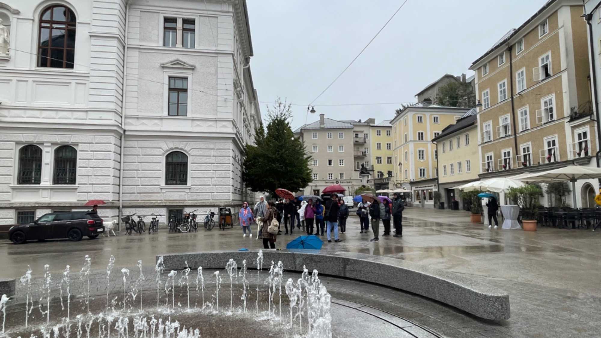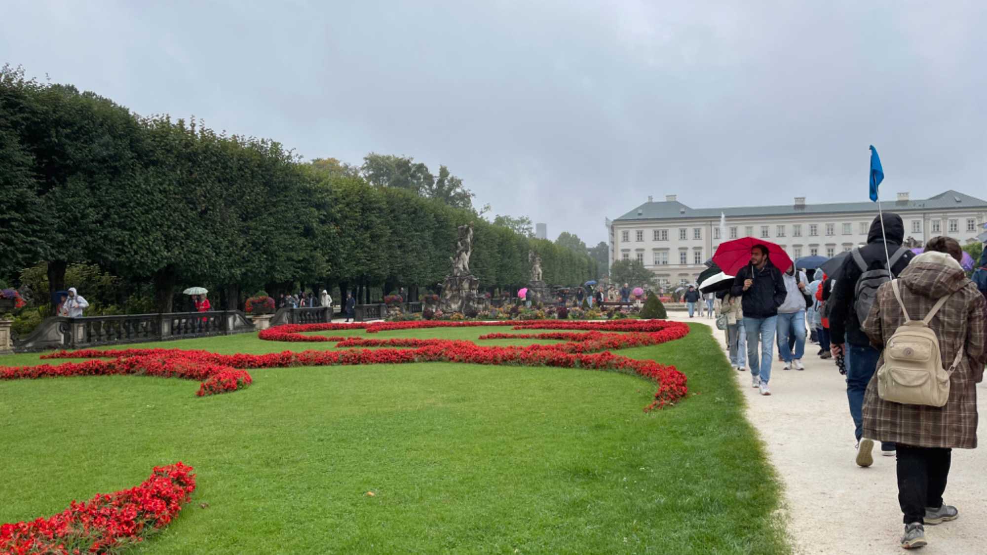 L’avantage lorsqu’il pleut c’est qu’il y a peu de monde dans les rues! La ville se prépare pour des festivités. Nous visitions la maison natale du grand compositeur prodige Wolfgang Amadeus Mozart, le palais du festival, la cours et le cimetière Saint-Pierre et les -superbes- jardins Mirabell qui font face au château du même nom. Inaugurés en 1690, les jardins contiennent des statues gigantesques, des fontaines et des fleurs à perte de vue.