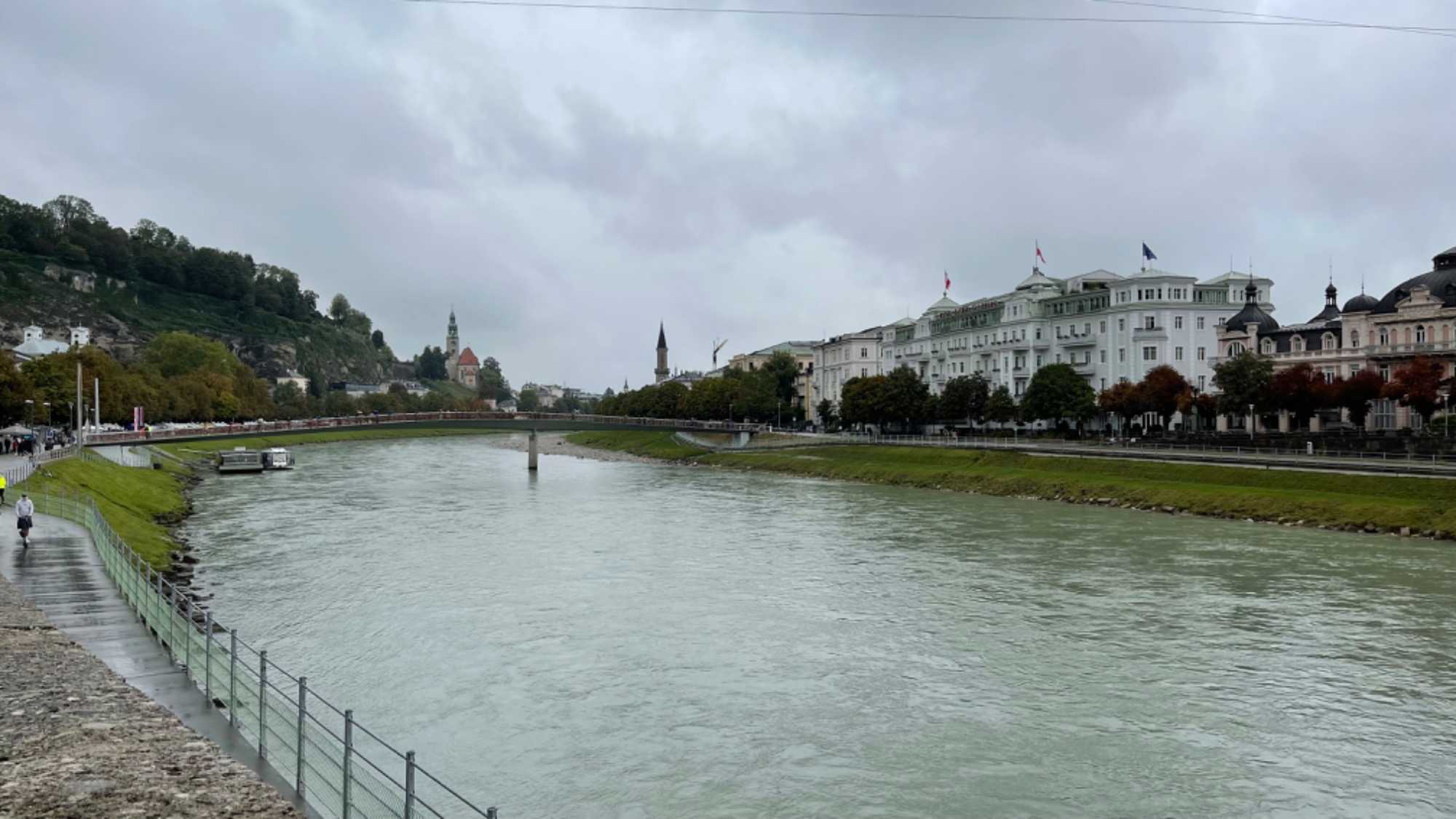 Départ à 9 heures car nous avons rendez-vous dans la vieille ville de Salzbourg pour un tour de ville pédestre avec un guide local, Ehrhardt. La ville compte près de 160 000 habitants ce qui fait d’elle la 4e ville la plus peuplée d’Autriche. La vieille ville est inscrite sur la liste du patrimoine mondial de l’UNESCO depuis 1996. Le château qui la domine est la forteresse de Hohensalzburg, il est l’un des plus grands châteaux médiévaux d’Europe avec une longueur de 820 pieds par 493 pieds et est situé au somment de la montagne Festungsberg et sa construction a débuté en 1077!