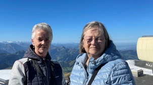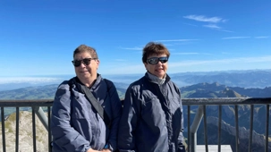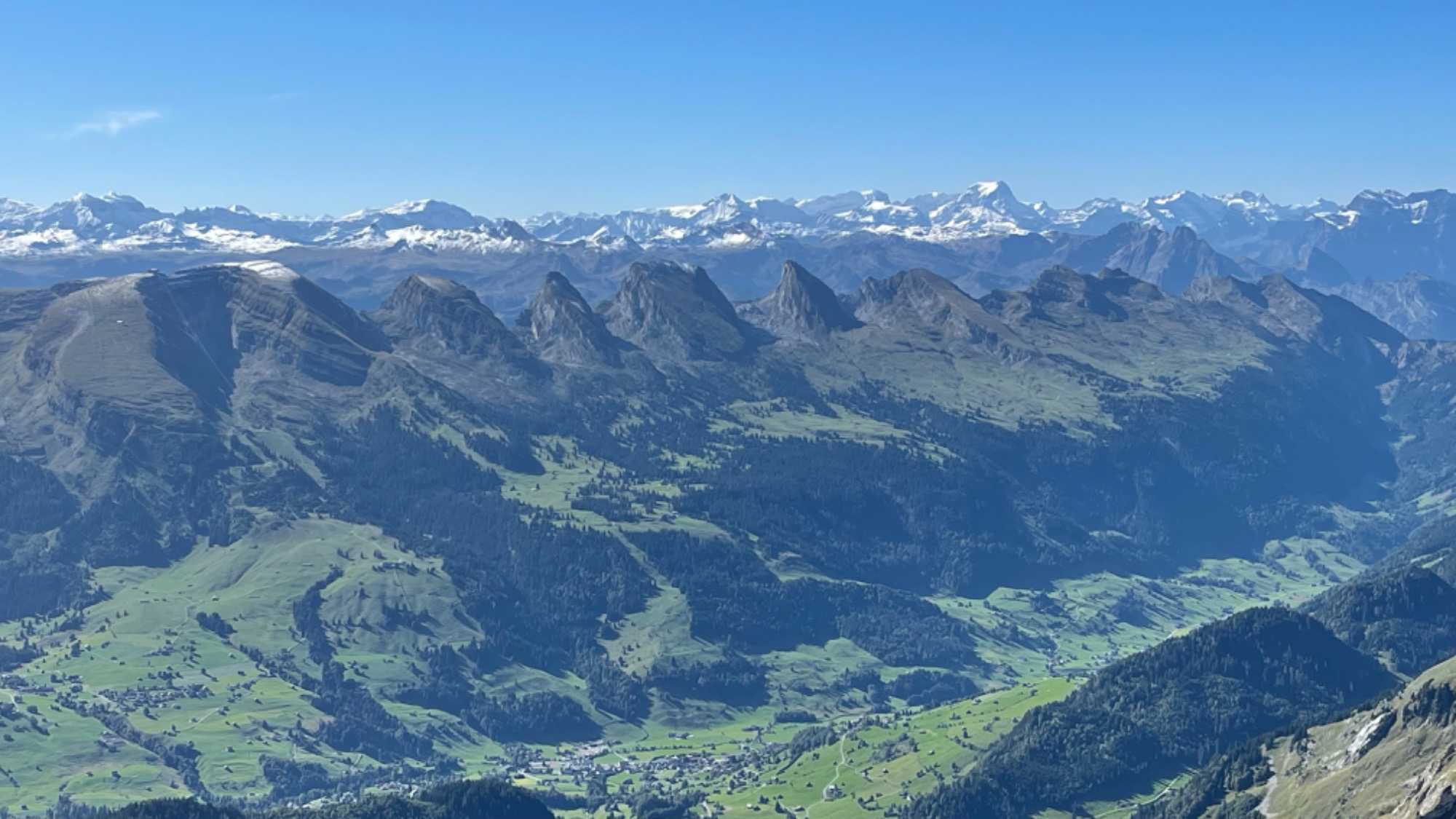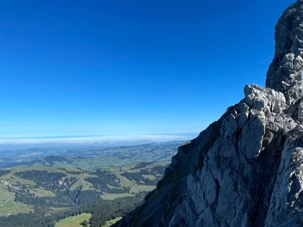 14e journée dans les Alpes, nous découvrons le panorama du Säntis, le plus haut sommet de l’Alpstein, offrant des points de vue uniques sur les limites nord des Alpes suisses et des pays voisins. Son point culminant se situe à 8 208 pieds (2 502 mètres) d’altitude, il est constitué de roches calcaires. Aussi, habituellement la situation exposée du Säntis cause des conditions météorologiques extrêmes qu’on ne trouve d’habitude qu’en haute montagne et aujourd’hui, les conditions étaient excellentes. Nous avons été choyés, il faisait SUPER beau et la température était idéale, nous étions même habillés trop chaudement!