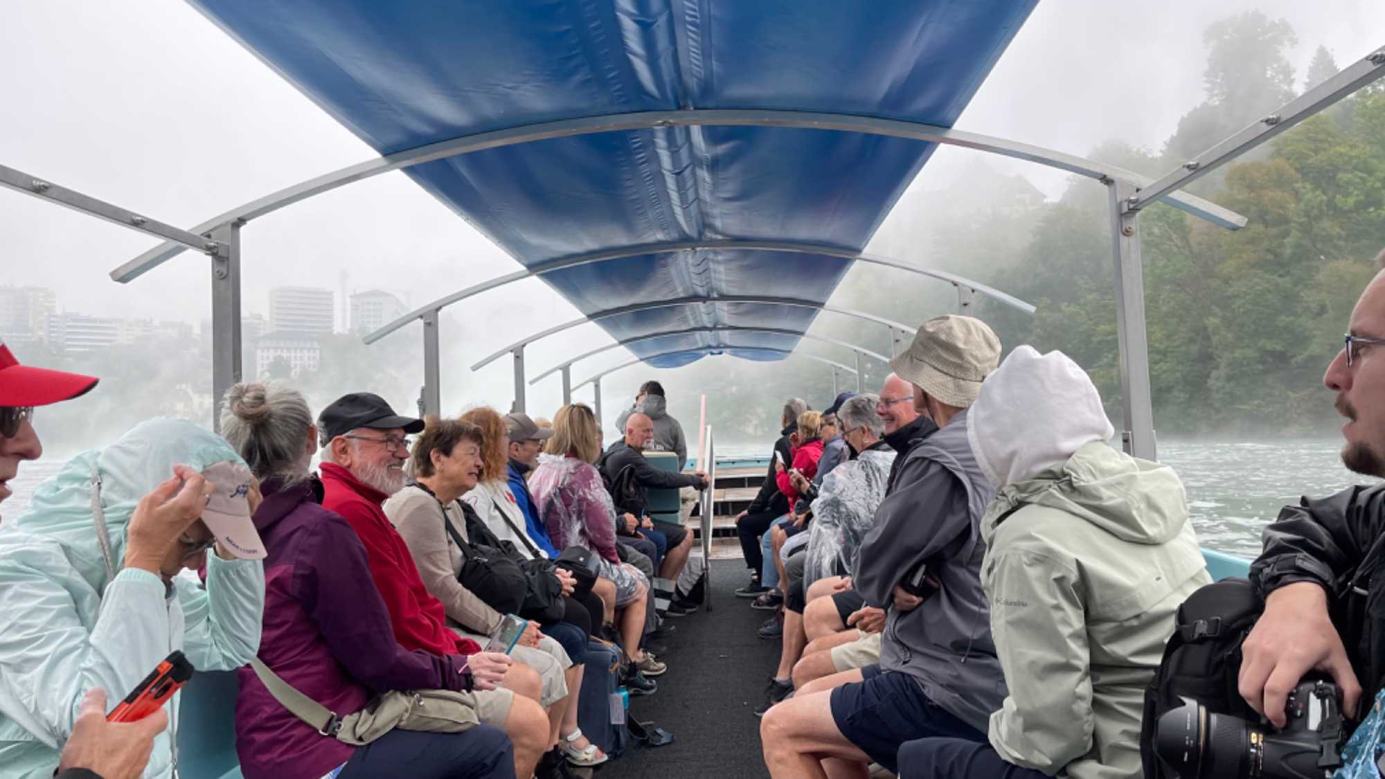 Un bateau nous emmène vers les châteaux dans le bassin des chutes et même jusqu’à l’imposant rocher qui se trouve au milieu des eaux bouillonnantes. Il y a plus de 15 000 ans, le Rhin est dévié de son cours d’eau par des mouvements tectoniques et a dû se tailler un nouveau passage. Les chutes du Rhin se sont formées à la frontière entre une couche de calcaire dur et une zone de cailloutis. Plusieurs centaines de mètres cubes d’eau par seconde se précipitent en mugissant d’une hauteur de 75 pieds sur une largeur de plus de 492 pieds.