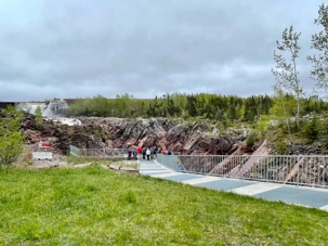 En après-midi, nous faisons une halte à Grand Falls-Windsor pour la visite du Centre d’interprétation des salmonidés. Un endroit très intéressant! Le personnel est très compétent et peut répondre à toutes nos questions. Une courte vidéo de 8 minutes sur l'aménagement de la rivière et les travaux pour augmenter le stock de saumon montre à quel point l'élevage du saumon a été un réel succès dans cette région. Regarder le saumon de l’Atlantique sauter pour remonter la rivière est très divertissant mais ils étaient eux aussi gelés et nous n’en avons pas vus aujourd’hui ! C’est un bel arrêt pour comprendre leur histoire de leur lutte acharnée pour frayer. Il y a même un point de vue pour les observer sous l’eau. De plus, les vues depuis la terrasse d'observation sont incroyables. Mes photos vont très certainement vous plaire et en prime, il ne pleut pas.