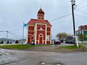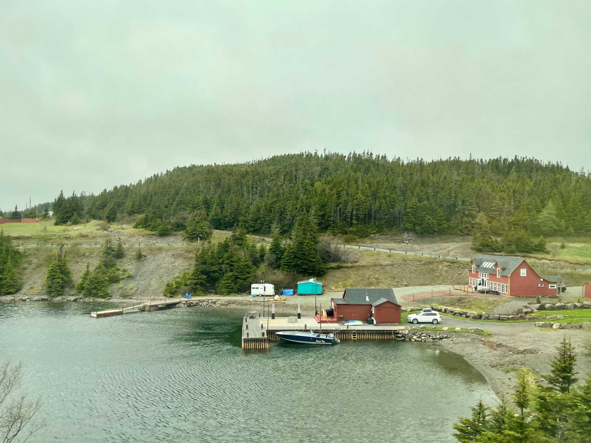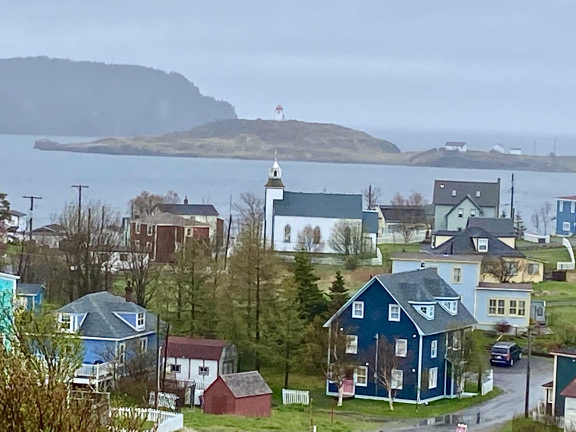 En fin d’avant-midi toujours en route vers la péninsule de Bonavista, Lucie avait prévu avec notre chauffeur Peter de nous faire voir un autre petit bras de mer et de se rendre à Trinity. Cela valait le coup pour les couleurs des maisons et pour le paysage. Nous aurions pu y voir des icebergs car souvent ce passage de la mer les laisse s’infiltrer vers le village. Nous avons fait une petite marche et j’ai pris quelques belles photos sans pluie mais sous un ciel encore un peu gris. Cela ne fait rien car souvent les photos sont plus jolies lorsque le soleil ne brille pas trop.