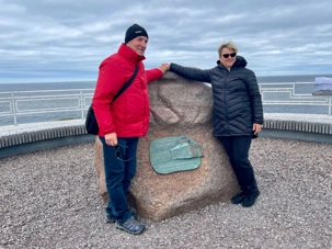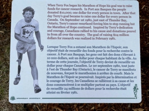 Nous faisons un arrêt pour visiter le monument Terry Fox situé derrière le bâtiment de l’Administration portuaire de St-John, près de l’endroit où Terry Fox a plongé sa jambe artificielle dans l’eau du port de St-John au début de sa course historique.