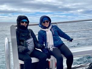 Pas de chance pour les baleines ce matin, mais la mer est calme et il ne fait pas froid, tant mieux pour nous. On nous dit que c’est ici où il est possible d’observer la plus grande concentration de baleines à bosse au monde quand la météo le permet. Hier ils en ont vus... mais bon c’est toujours un coup de dés voir des baleines. L’atmosphère était très agréable grâce à un excellent chanteur, guitariste et violoniste qui nous a accompagné en chansons durant ce beau temps sur la mer. Le port est splendide vu de la mer et que dire de ses jolies maisons colorées !