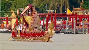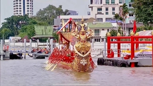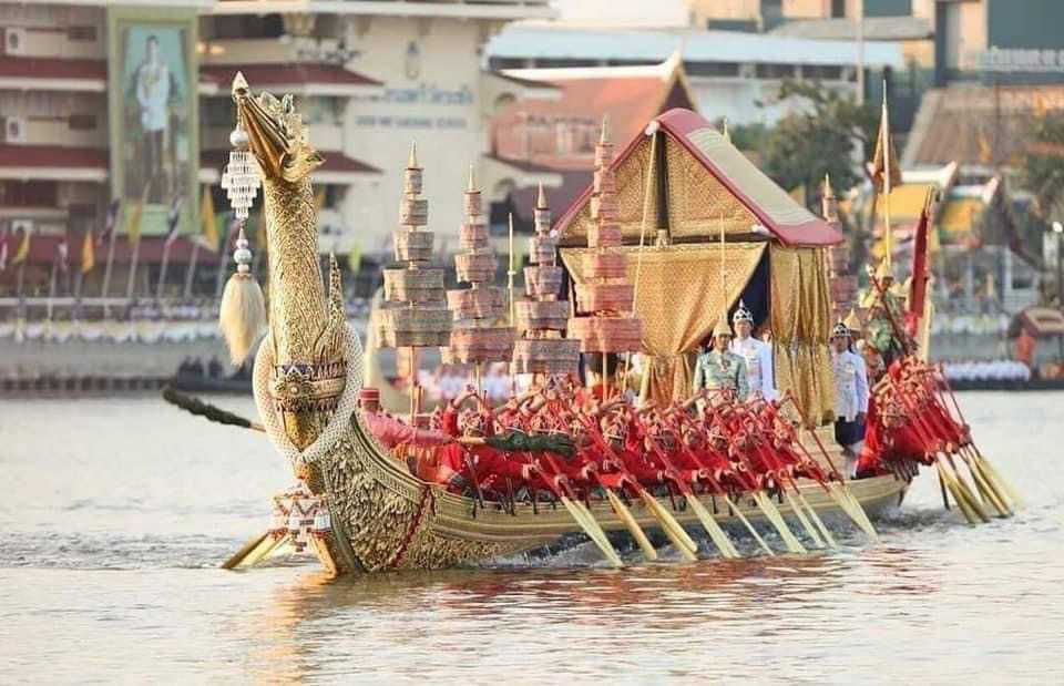 • Le déroulement de la procession des barges royales a peu changé depuis le 18e siècle. Une cinquantaine d’embarcations entourent la barge qui transporte le roi. Celle-ci nommée « Suphannahong » mesure 45 mètres de long.