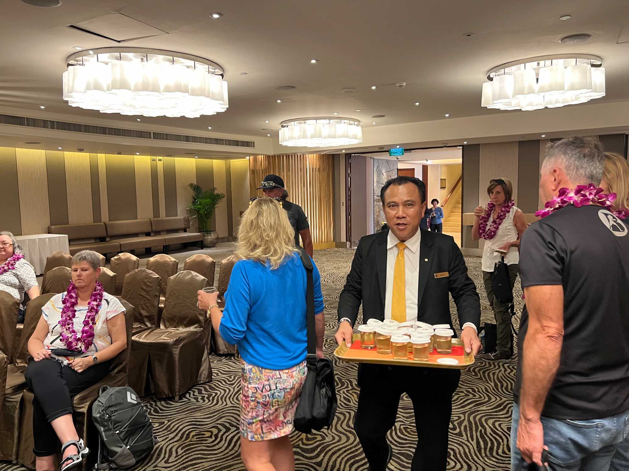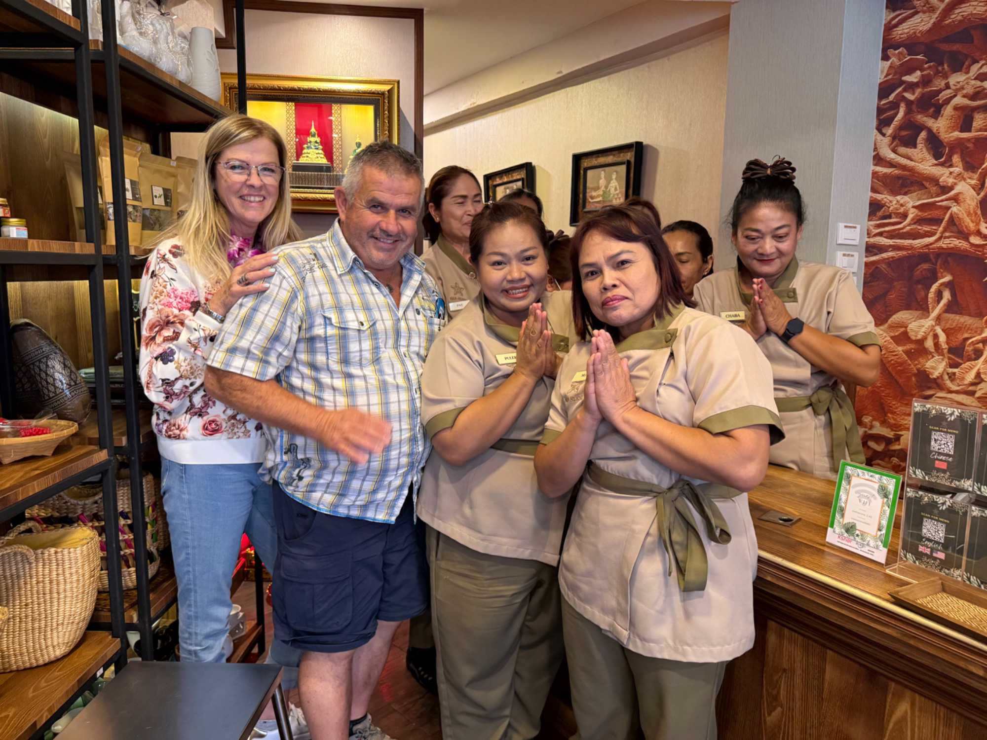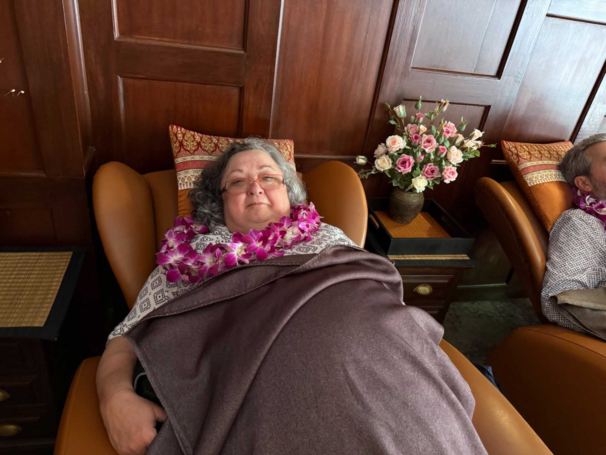 En attendant de pouvoir accéder à nos chambres, une belle surprise attendait mes voyageurs …un massage aux pieds, soit le remède idéal pour reposer les pieds endoloris après un long vol et également une pratique très répandue en Thaïlande.