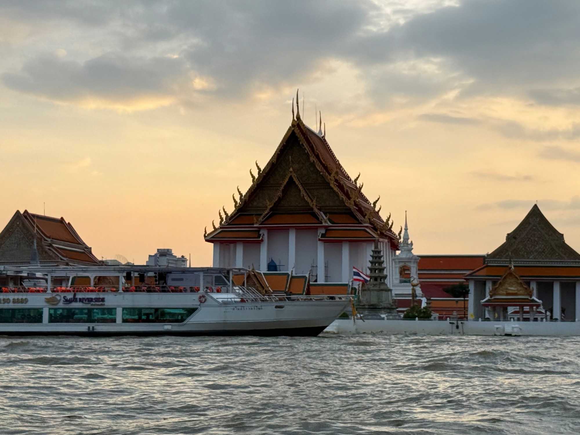 Nous poursuivrons par la suite notre navigation et nous ferons quelques arrêts en cours de route pour visiter le temple bouddhiste du Wat Arun (temple de l’Aube), situé au bord du fleuve Chao Phraya, sur la rive de Thonburi, en face du Grand Palais. Ce temple est l’un des plus emblématiques et des plus époustouflants de Bangkok avec son architecture à couper le souffle et ses vues imprenables sur la rivière.