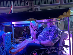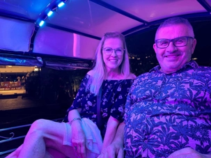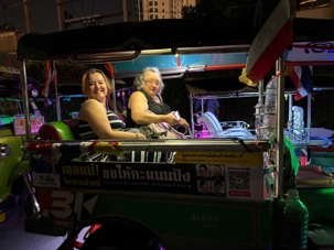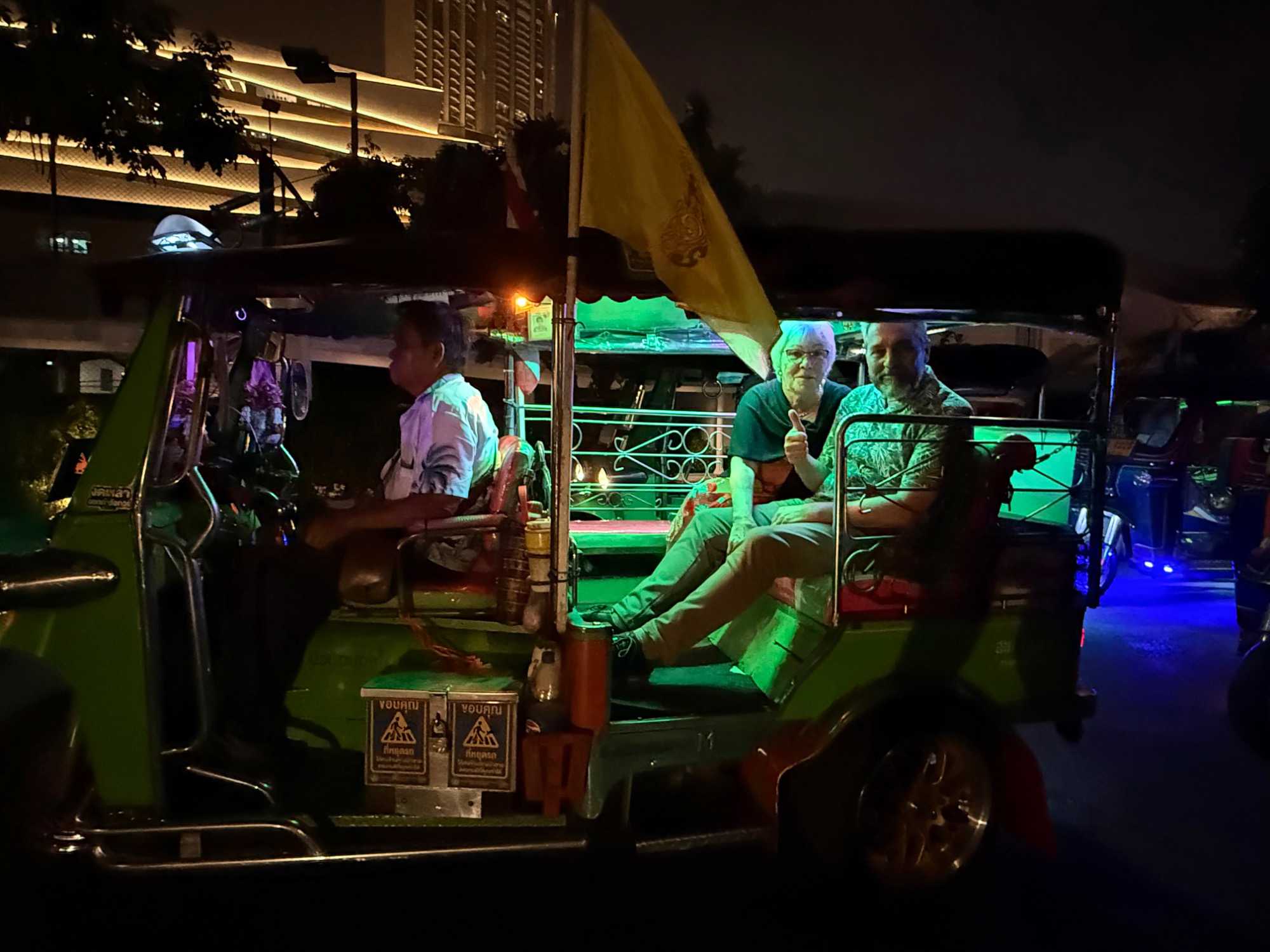 Au sortir du restaurant, une belle surprise les attendait, une promenade de nuit en Tuk Tuk pour visiter Bangkok la nuit. Ce fut littéralement la « cerise sur le sundae », comme on dit au Québec! Les tuk tuks sont très populaires auprès des visiteurs qui, l’air amusé, se laissent conduire dans la ville au milieu de cette circulation très encombrée qui surgit de part et d’autre tout autour d’eux. Il faut bien se tenir!