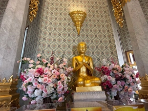 Nous en profitons pour visiter le « Wat Traimit » ou Sanctuaire du Bouddha d’or. Ce temple abrite la plus grande statue de Bouddha en or au monde avec une hauteur de 3 mètres et un poids de 5 tonnes et demie. A l’entrée du sanctuaire, la vue de ce Bouddha en or massif est à couper le souffle tellement c’est impressionnant de voir autant de richesse. Son histoire l’est tout autant et je vous la raconte brièvement.