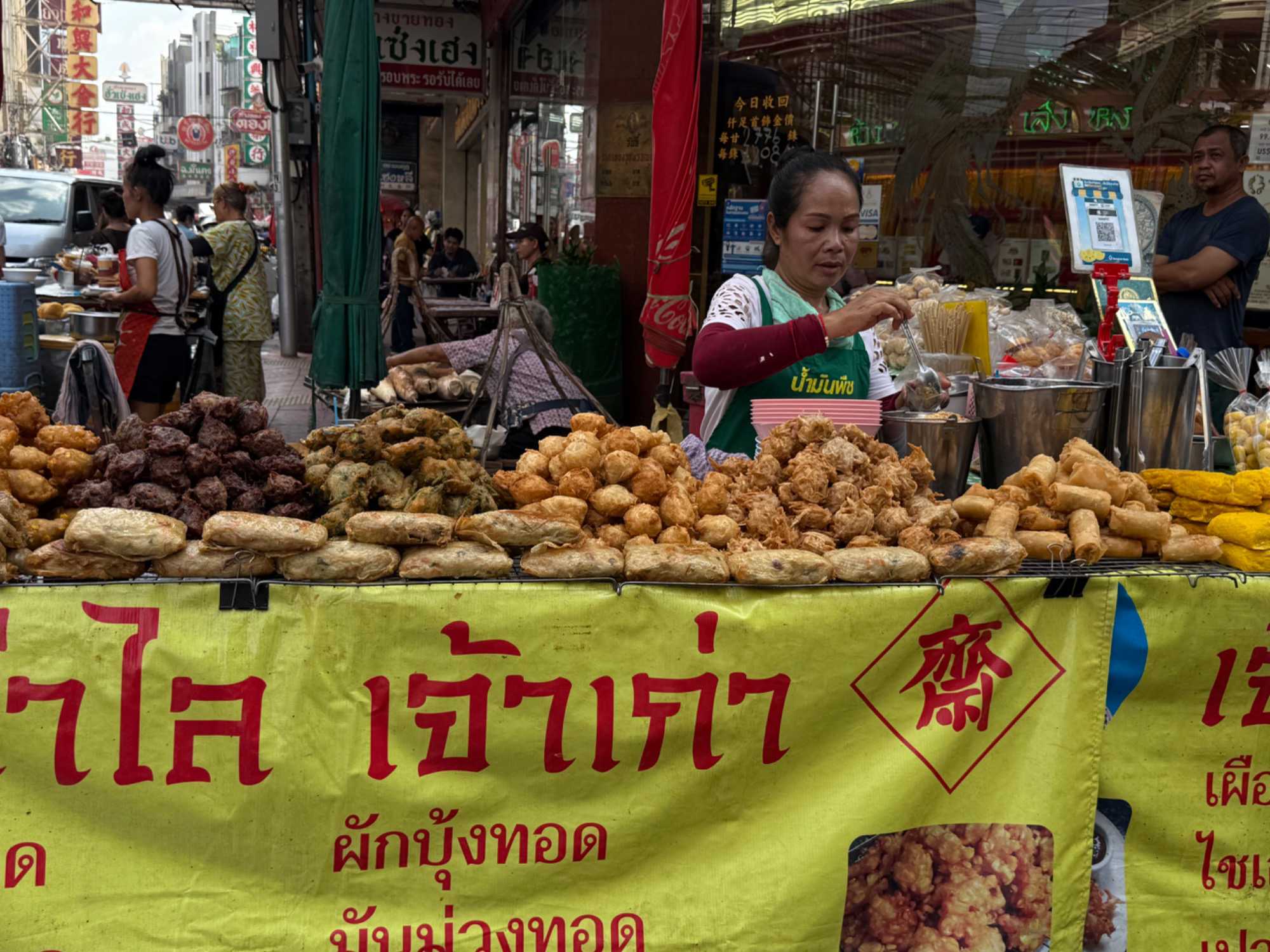 Puis, nous poursuivons notre route vers le quartier chinois. Exotique, pittoresque et bruyant, il est impossible de passer à côté du Chinatown, lorsqu’on séjourne à Bangkok,là où les premières vagues d’immigration chinoise sont arrivées après 1782, alors que Rama 1er instaura la dynastie Rattanakosin. Le nombre des migrants a augmenté demanière significative, ce qui a rendu nécessaire la fondation du Chinatown. Le besoin de s’entourer de marchands pour approvisionner la jeune capitale s’avérait indéniable. Malgré une forte croissance à partir des années 1850 et la richesse qu’en ont retiré les chinois qui leur a permis d’accéder à des propriétés immobilières cossues, la richesse a aussi malheureusement entraîné la démesure et on a vu l’apparition de trafiquants d’opium, de lieux de perdition, etc.