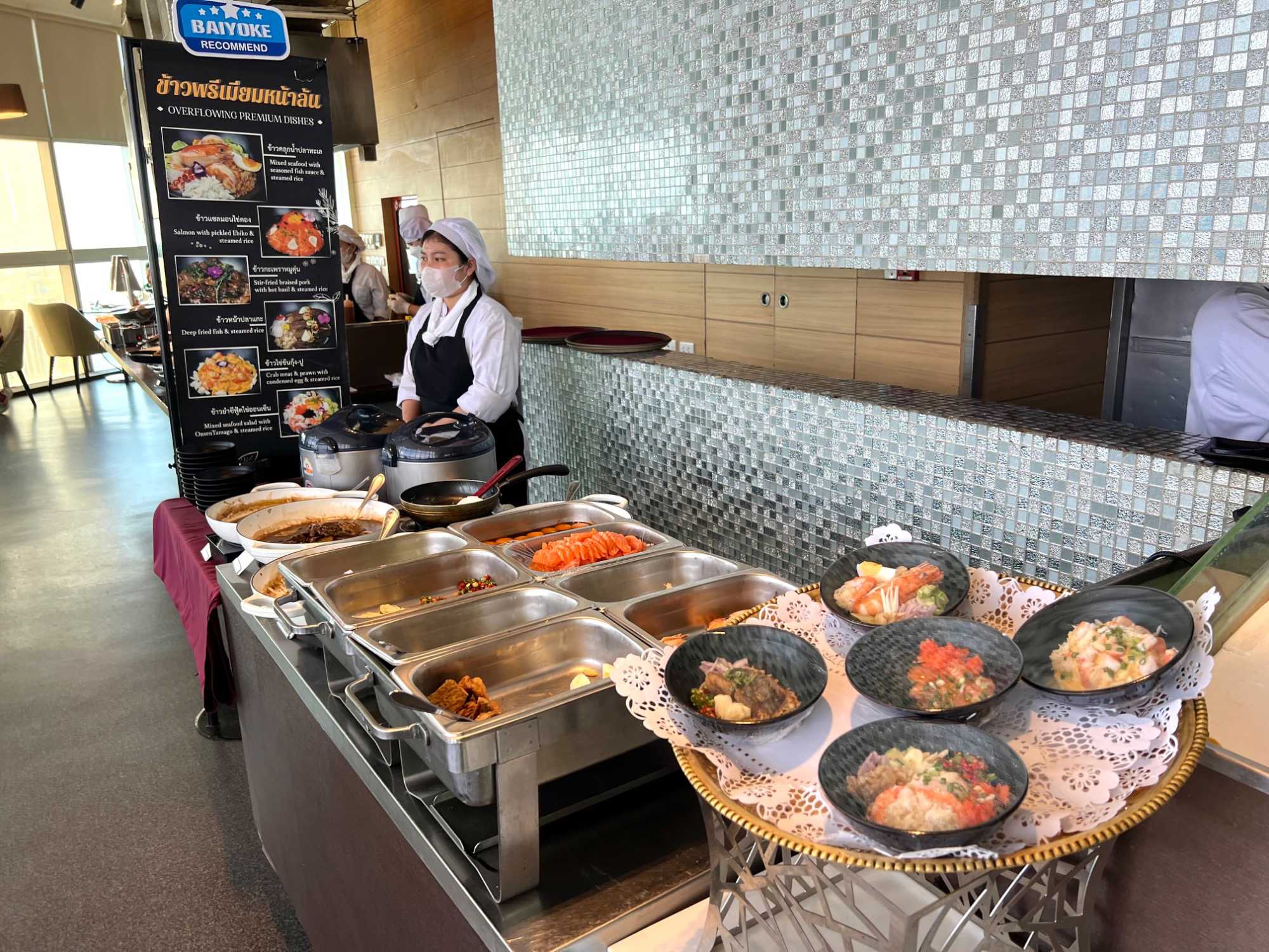 Toutes ces bonnes odeurs d’épices et d’arômes alléchants provenant des étals offrant une grand variété de spécialités locales nous chatouillent l’estomac et la faim se fait vite sentir et heureusement, c’est dans un restaurant situé à l’intérieur du marché, que nous nous attablons pour déguster un autre délicieux repas thaïlandais.
