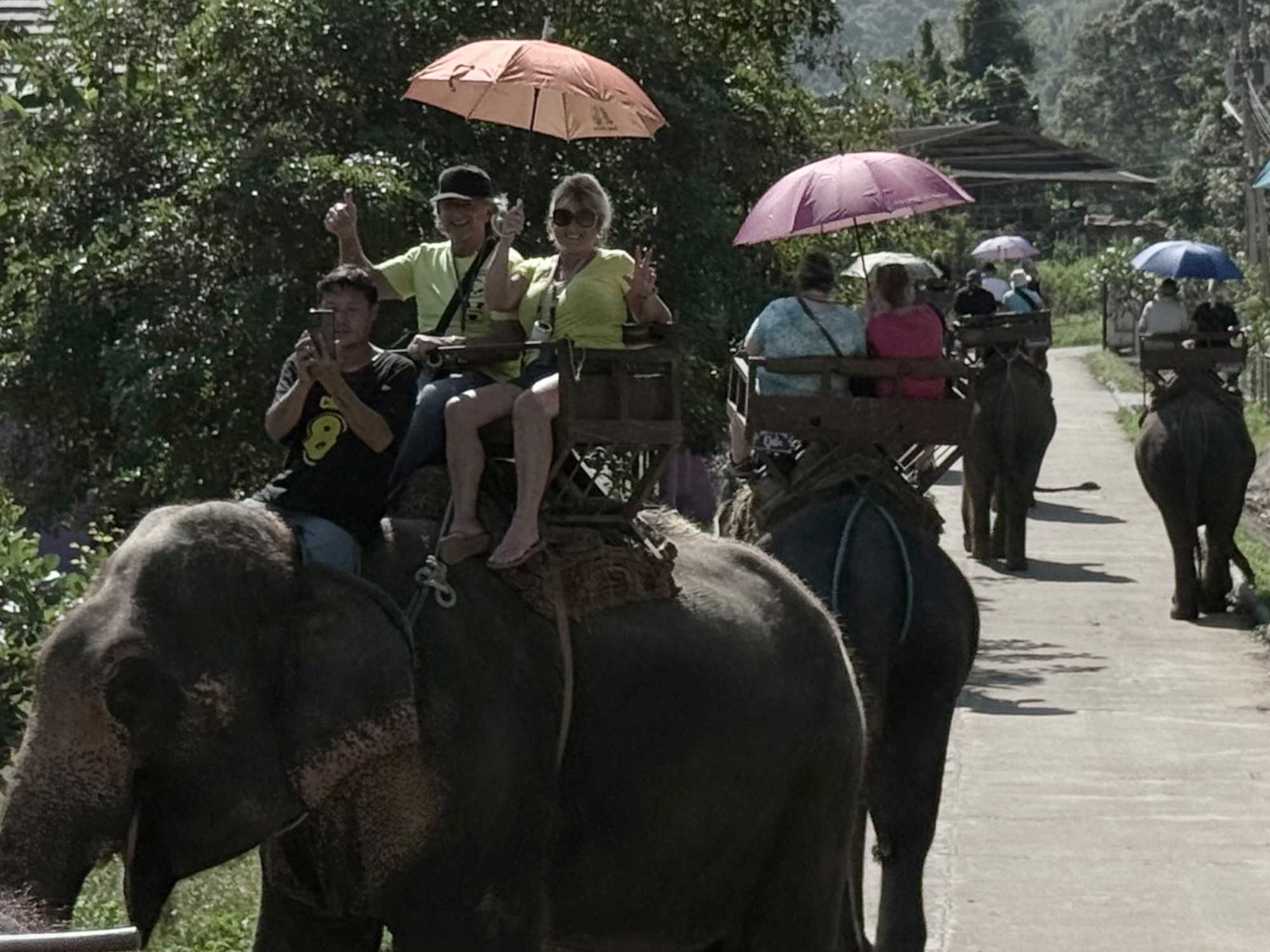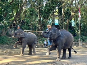 L’agenda d’aujourd’hui prévoit une autre journée inoubliable! Nous avons tous hâte de partir à la découverte et de vivre à nouveau de belles expériences. Notre premier arrêt se fera dans un célèbre camp pour les éléphants. En fait, ce parc accueille les éléphants pour les aider à se réhabiliter de leurs blessures ou encore pour les accueillir lorsqu’ils sont âgés et à la retraite. Depuis des millénaires, l’éléphant vit en Thaïlande et c’est comme animal de ferme pour transporter le bois qu’il a été utilisé. Mais au fil du temps, comme leur imposante physionomie attirait les voyageurs, des camps ont vu le jour pour divertir les visiteurs mais malheureusement parfois ils ont été retenus en captivité dans des conditions de vie parfois déplorables, certains étaient battus, torturés et la plupart mouraient prématurément pour cause de maladie. C’est alors que les organismes pour la protection des animaux ont dénoncé ces conditions inhumaines et que des camps de sauvetage les ont accueillis.