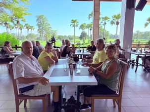Ce midi, nous avons eu le plaisir de dîner sur la terrasse durestaurant Summit Green Valley, faisant face au 19e trou d’un magnifique golf. Tous se sont à nouveau régalés par le menu offert, tout en appréciant ce bel endroit entouré d’une multitude de fleurs ainsi que les ventilateurs au plafond pour se rafraîchir durant le repas. Quel bonheur de ressentir cette petite brise chatouiller nos épaules!