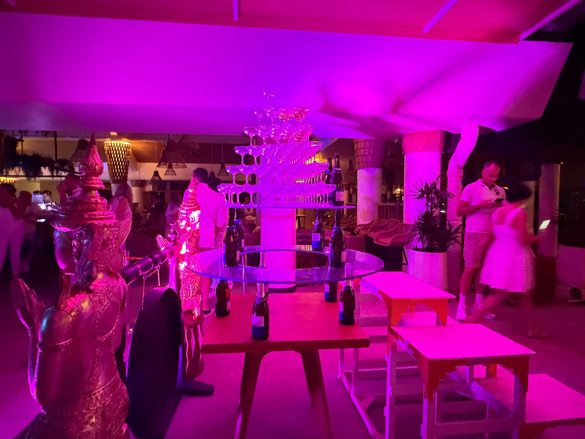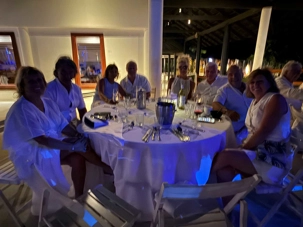 Nous avions une soirée blanche ou l’on pouvait s’habiller en blanc et notre souper était encore une fois extraordinaire. Le décor, l’ambiance, le bon vin, les nombreux choix au menu allant du canard à l’orange à un éventail de mets de cuisine grecque, coréenne, thaïlandaise, et j’en passe! Il y avait tellement de bonnes choses à déguster et c’était difficile d’y résister. Et que dire du choix de desserts!