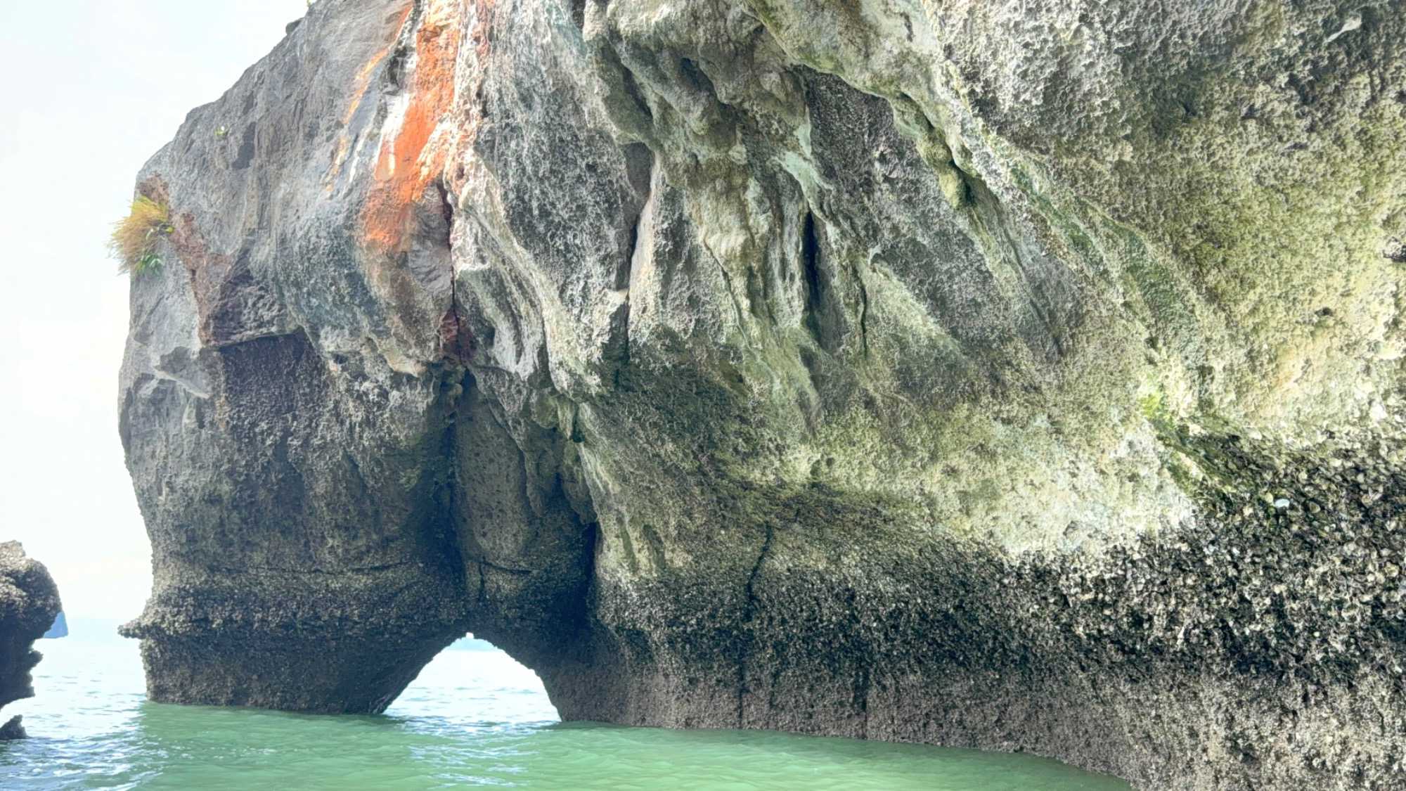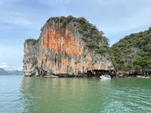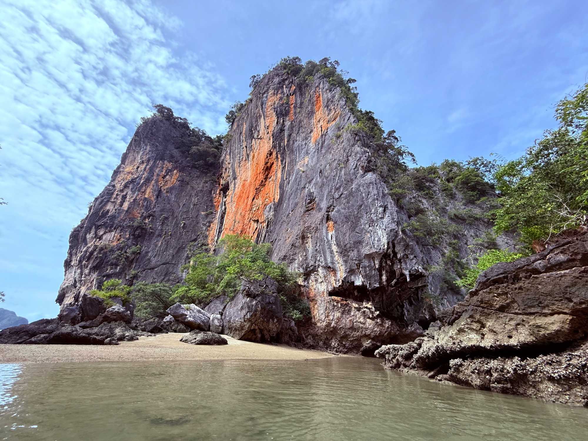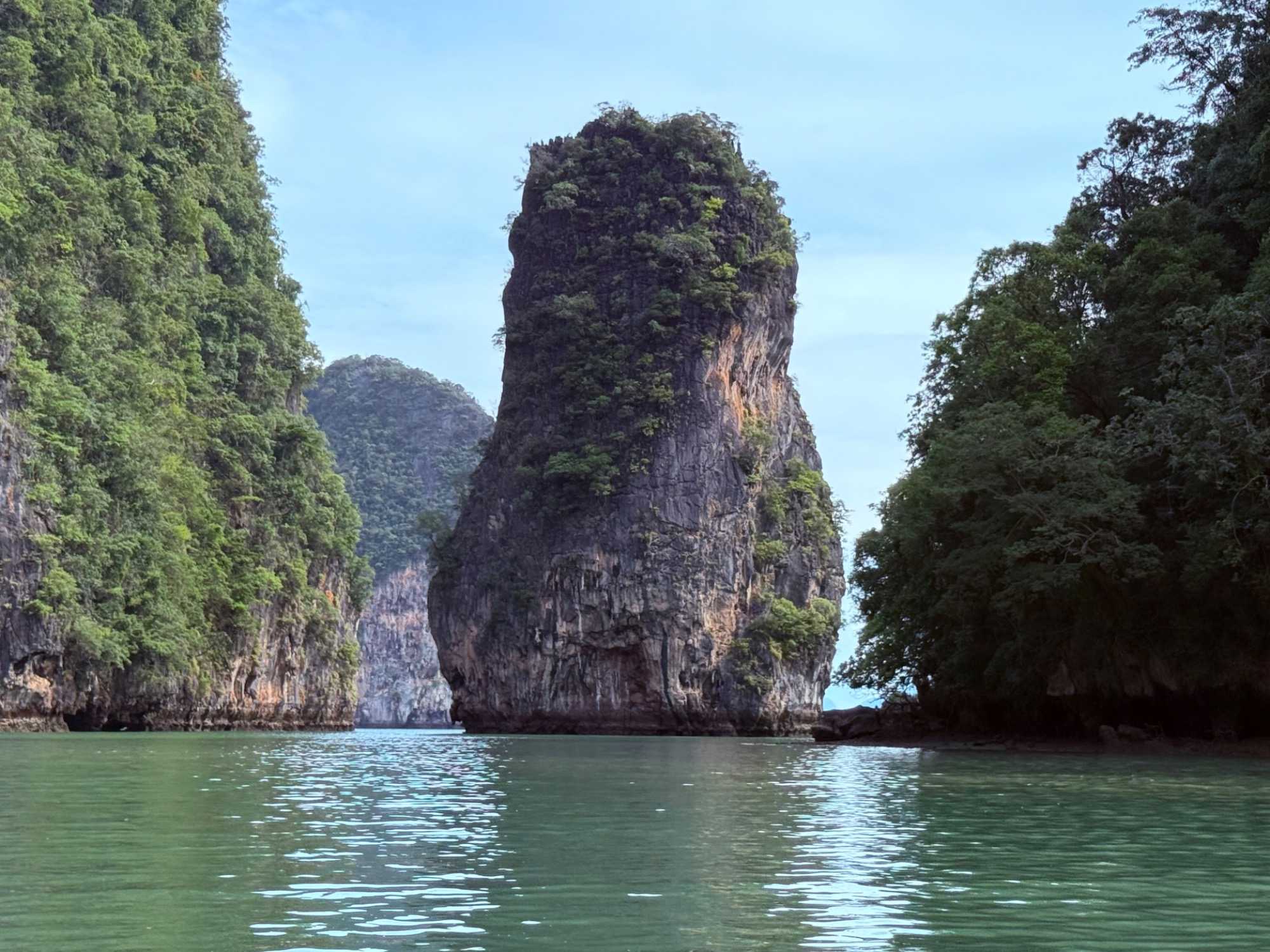 Dès que nous y sommes arrivés, nous avons tous été fascinés par le paysage composé de falaises rocheuses imposantes et impressionnantes, qui semblent immerger de cette eau cristalline verdâtre. Cette île, d’une superficie d’environ 400 mètres carrés fait partie d’un groupe d’une centaine d’autres îles qui se retrouvent dans la Baie de Phang Nga. Les bateaux ne peuvent pas s’y approcher très près puisqu’elle fait partie du parc national marin d’Ao Phang Nga, un territoire maintenant protégé.