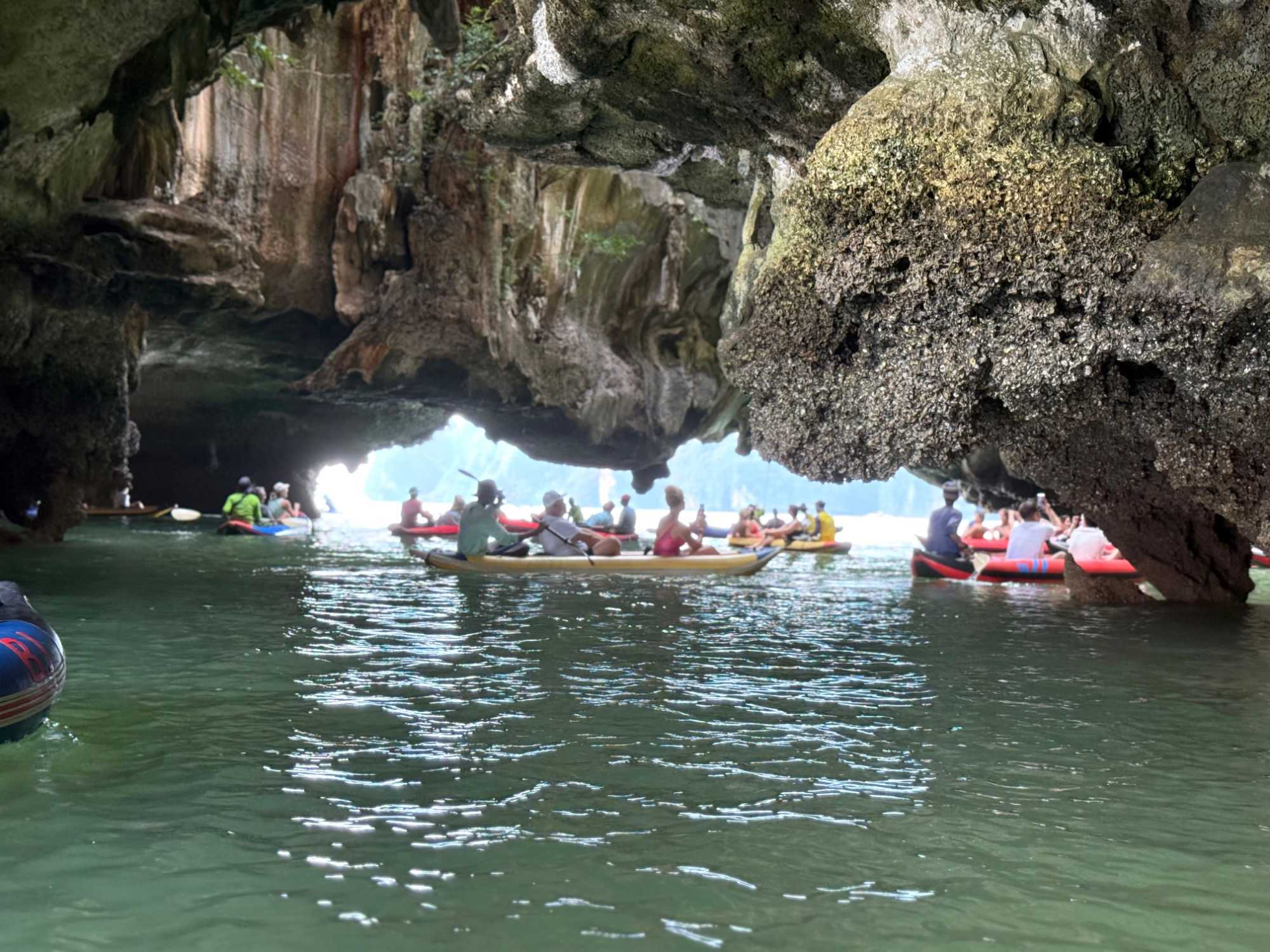 Par la suite, nous poursuivons notre navigation en direction du village sur pilotis de Koh Panyee, un célèbre village flottant dans la baie de Phang Nga, où réside une petite communauté insulaire d’environ 3000 personnes, dont plus de 300 familles musulmanes originaires d’Indonésie.