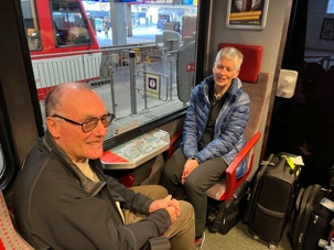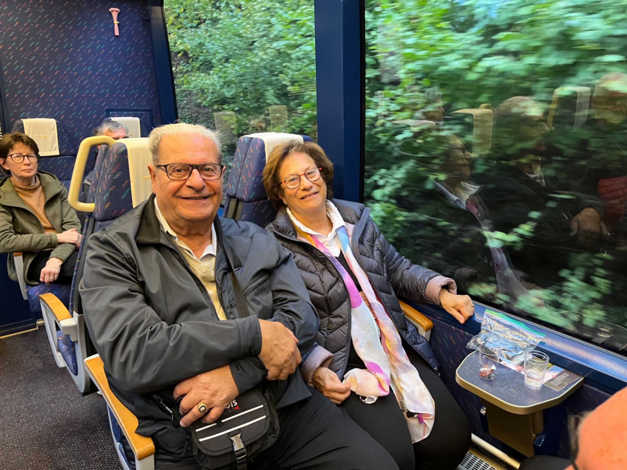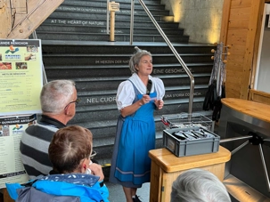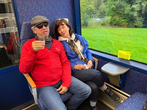 Au départ de Montreux, le train grimpe au-dessus du lac, traverse un tunnel et nous emmène au coeur des forêts alpines, des torrents et des villages traditionnels : des paysages très variés défilent sous nos yeux. La région que traverse la GoldenPass Line est d’une richesse et d’une diversité incomparables. Quelle belle invention que ces fenêtres panoramiques ! Naturellement, c'est sur cet extraordinaire trajet que le premier train panoramique au monde a vu le jour. Nous avons concocté pour nos voyageurs un apéro que nous prenons dans le train. Il s’agit d’une eau de vie à la cerise (ou si vous voulez un kirsch schnaps) un breuvage traditionnel de la Suisse accompagné d’un chocolat à la saveur de pain d’épice. Une autre gâterie offerte par Louise Drouin.