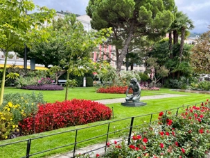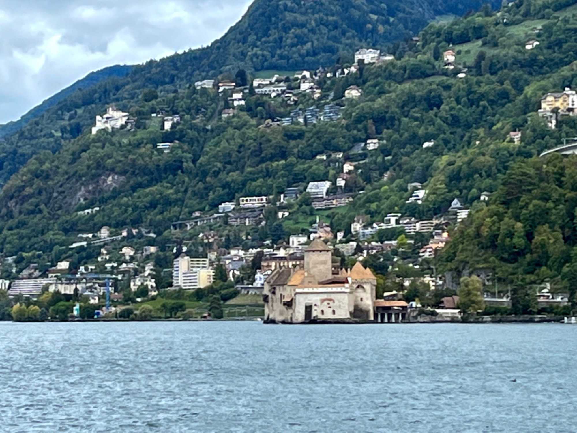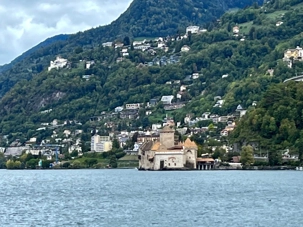 Puis nous nous rendons dans la ville voisine, Montreux où Katia nous amène voir le château de Chillon, le deuxième emblème de la Suisse après le mont Cervin. Ce magnifique château médiéval de Chillon, l'une des cartes postales de la Suisse, est construit sur un îlot rocheux à l'extrémité est du lac Léman, le plus grand lac intérieur d’Europe centrale. La ville de Montreux est située dans une baie protégée sur le lac Léman, entourée de vignobles, et dans l’époustouflant décor des Alpes enneigées. Grâce à son climat extraordinairement doux, Montreux mérite son appellation de capitale de la Riviera vaudoise. La région se caractérise par une végétation de pins parasols, de cyprès et de palmiers que l’on trouve plus généralement autour du bassin méditerranéen. Elle est notamment réputée pour le Montreux Jazz Festival qui a lieu chaque année en juillet sur différentes scènes et dans les parcs de la ville.