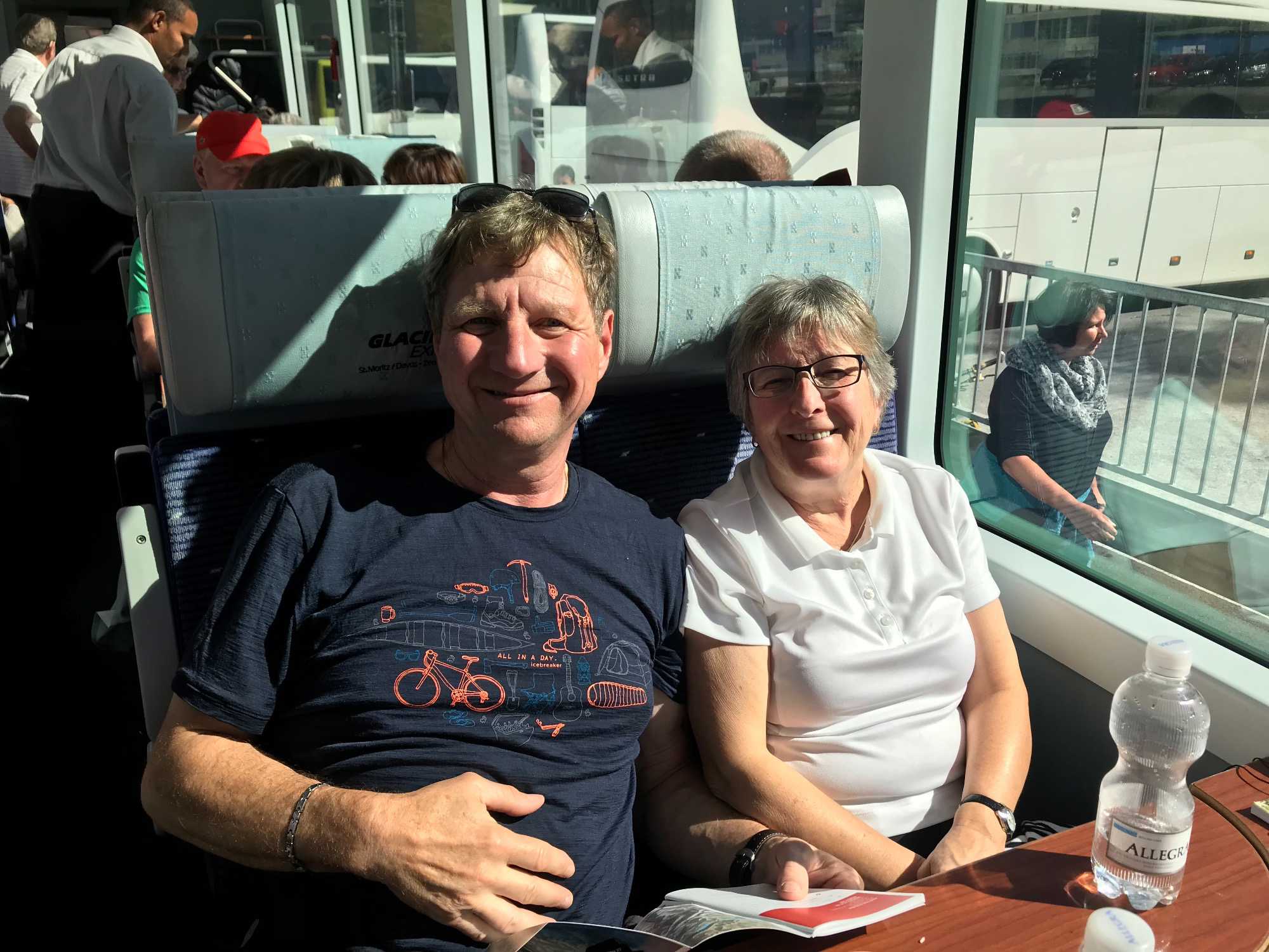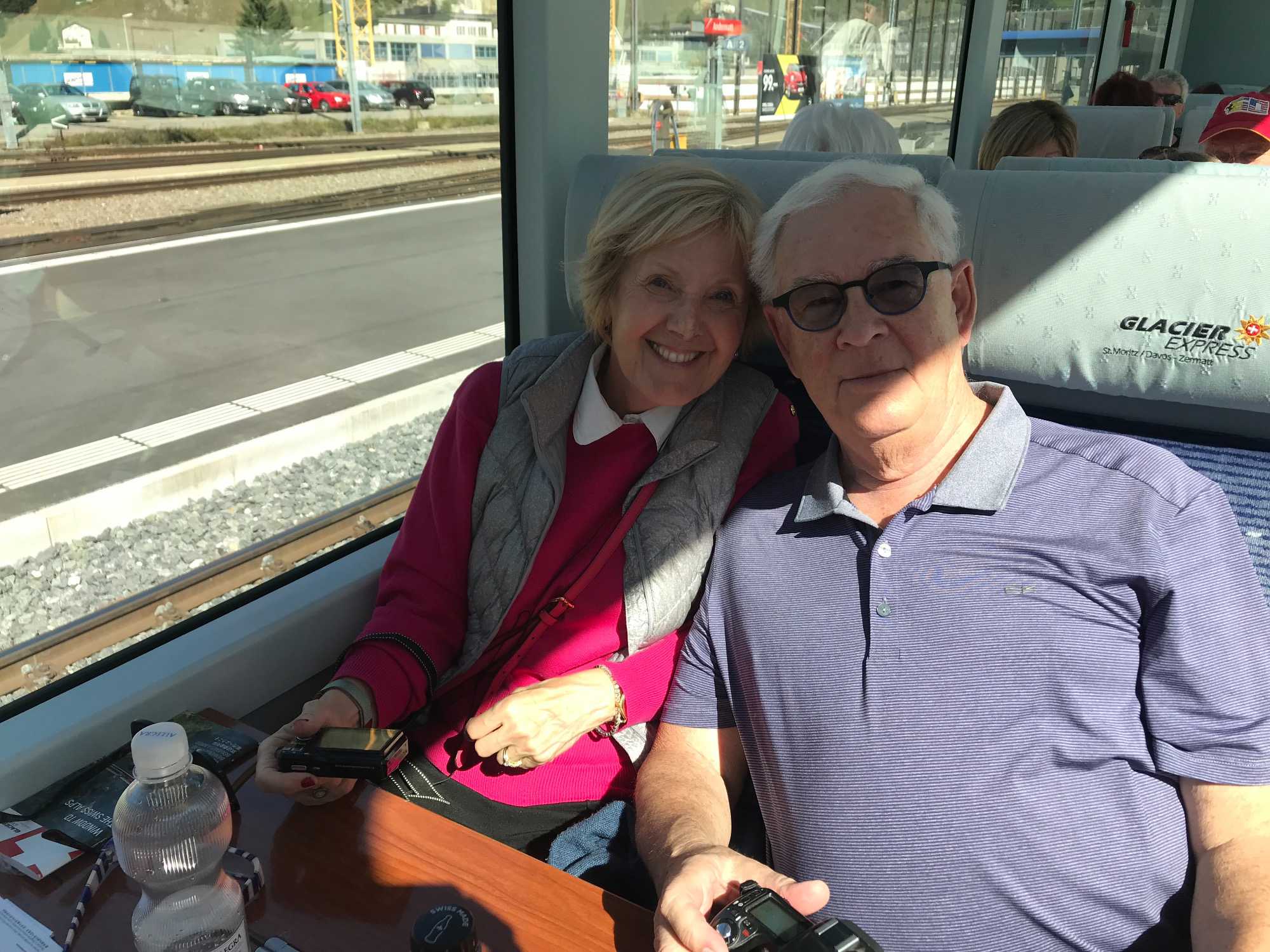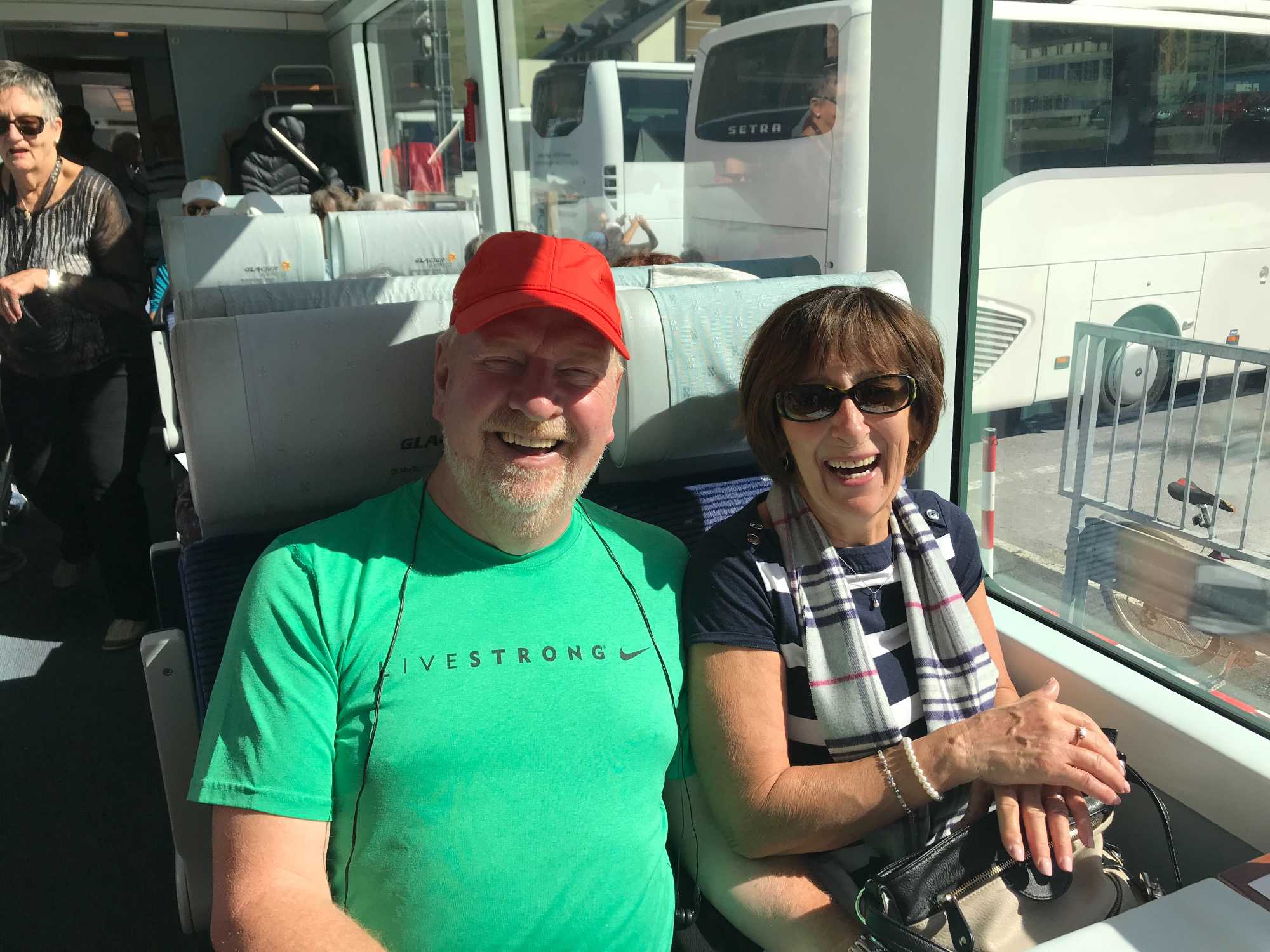 On se donne donc rendez-vous à 10h45 pour nous rendre à la gare. Nous avons alors le bonheur d’embarquer à bord du fameux « Glacier Express », le train le plus célèbre du monde, en direction de Zermatt. Ce voyage dure 5h36 minutes et nous savourons chacune d'elles!