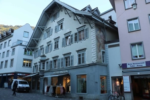 De mon côté, je convie les gens intéressés à une petite promenade dans la ville de Coire. Et notre gentille Angela décide de venir avec nous! Elle nous fait voir une grande partie de la vieille ville de Coire. On adore! Nous longeons les boutiques et certaines personnes se laissent tenter par les étalages… Mais il faut dire que nous sommes en Suisse et que le coût de la vie est cher...
