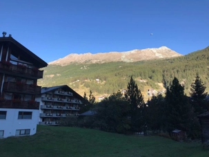 Il y a encore plein de fleurs sur les balcons et le soleil se couche à l'instant sur les montagnes environnantes, quel bonheur pour les yeux!