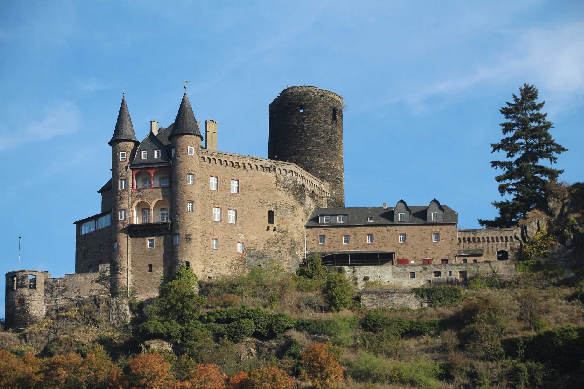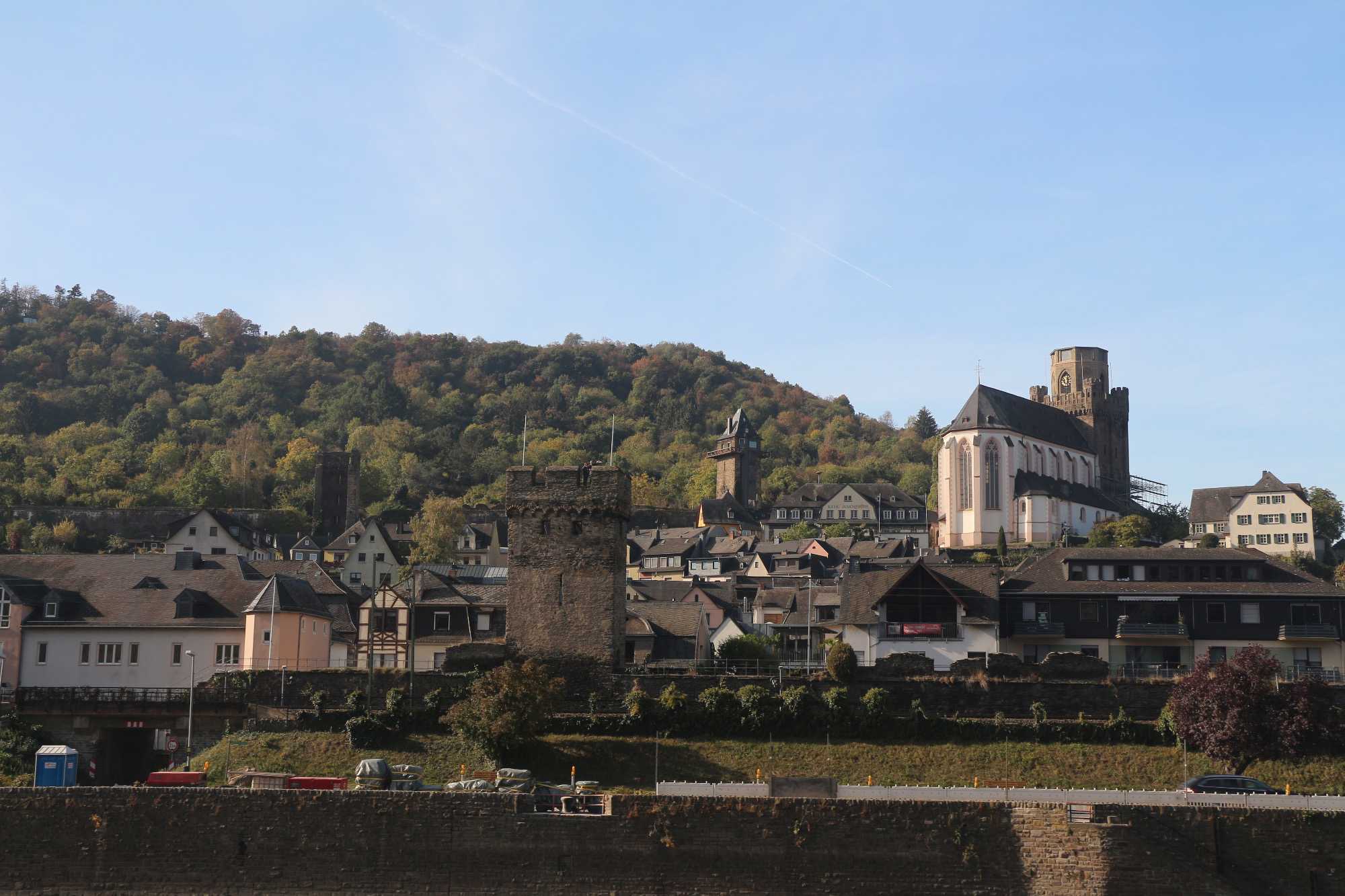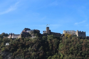 Notre navire a quitté le port de Coblence seulement ce matin pour se diriger vers les Gorges du Rhin, ce qui nous a permis d'admirer le paysage tout l'avant-midi. Pour ce passage spectaculaire sur ce beau fleuve, le soleil était au rendez-vous, merveilleux, même pas de brume! C'était quand même frais avec le vent, mais tellement beau.