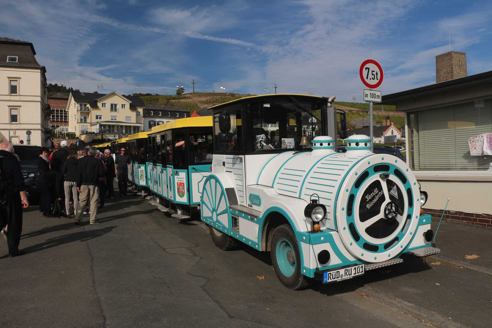 Nous prenons notre dîner avant de partir en excursion et ne sommes pas pressés aujourd'hui car nous sortons du navire à 14h45. Notre excursion débute par un tour commenté du vignoble de Rüdesheim en petit train touristique, durant lequel nous découvrons les fameuses vignes déjà cultivées par les Romains. Durant ce tour, l'histoire de la viticulture dans la région nous est expliquée et nous avons une vue imprenable sur Rüdesheim et le Rhin.