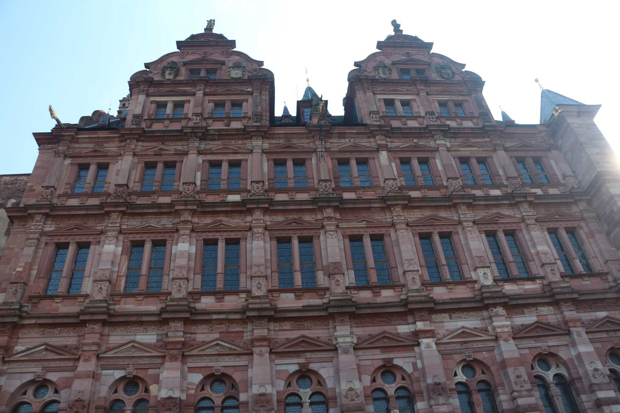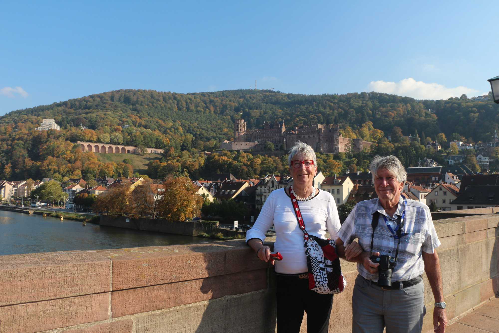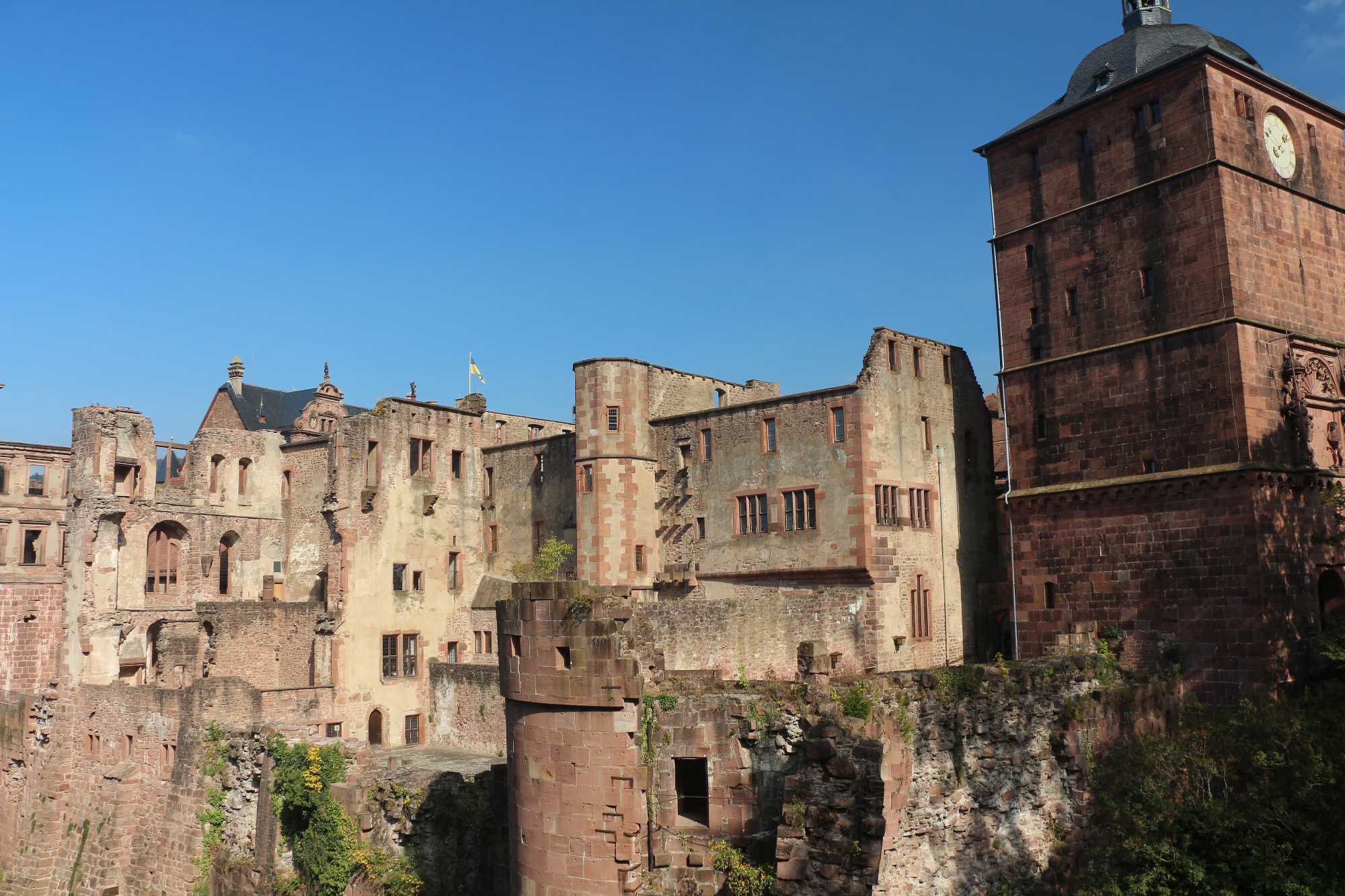 Nous arrivons à Mannheim juste pour le dîner. Puis, nous prenons un autocar en direction de Heidelberg. Romantique et idyllique, cosmopolite et dynamique, mythique et moderne : Heidelberg réunit harmonieusement tous ces éléments qui font son charme inégalé. Nous avons rendez-vous avec notre guide pour la visite de Heidelberg, Jeannine. Mais nous avons toute une Jeannine! Une Marseillaise de souche qui est vraiment très drôle. Elle parle sans arrêt et nous fait bien rire avec toutes ses expressions. Elle nous présente tout d'abord le château de Heidelberg, château le plus visité d’Allemagne. Nous découvrons l'extérieur de ce magnifique château de grès rose partiellement en ruine. Depuis la fin du XVIIIème siècle, les ruines du château inspirèrent les peintres et les poètes qui y voyaient un symbole de la grandeur et de la décadence des oeuvres humaines. Goethe, Hölderlin, Uhland et Eichendorff ont célébré le paysage du château tandis que de nombreux peintres le choisissaient pour motif. L'un des plus grands tonneaux en bois du monde qui, autrefois, a été rempli de vin (228000 litres), se trouve dans la cour. Surplombant la vieille ville, nous avons eu une magnifique vue lorsque nous nous sommes promenés le long de ses terrasses. Le château compte quelques bâtiments rénovés, mais aussi des parties authentiques qui sont un peu plus des ruines. Même les ruines du château couvertes de lierre, mais majestueuses encore, semblent témoigner de la puissance et de la splendeur de ses anciens habitants, les Wittelbach. Construit vers 1300 pour être un bastion muni de tours, de casemates et de fossés, le château devint, au cours de quatre siècles, l'emblème féodal de différents princes électeurs du Palatinat.