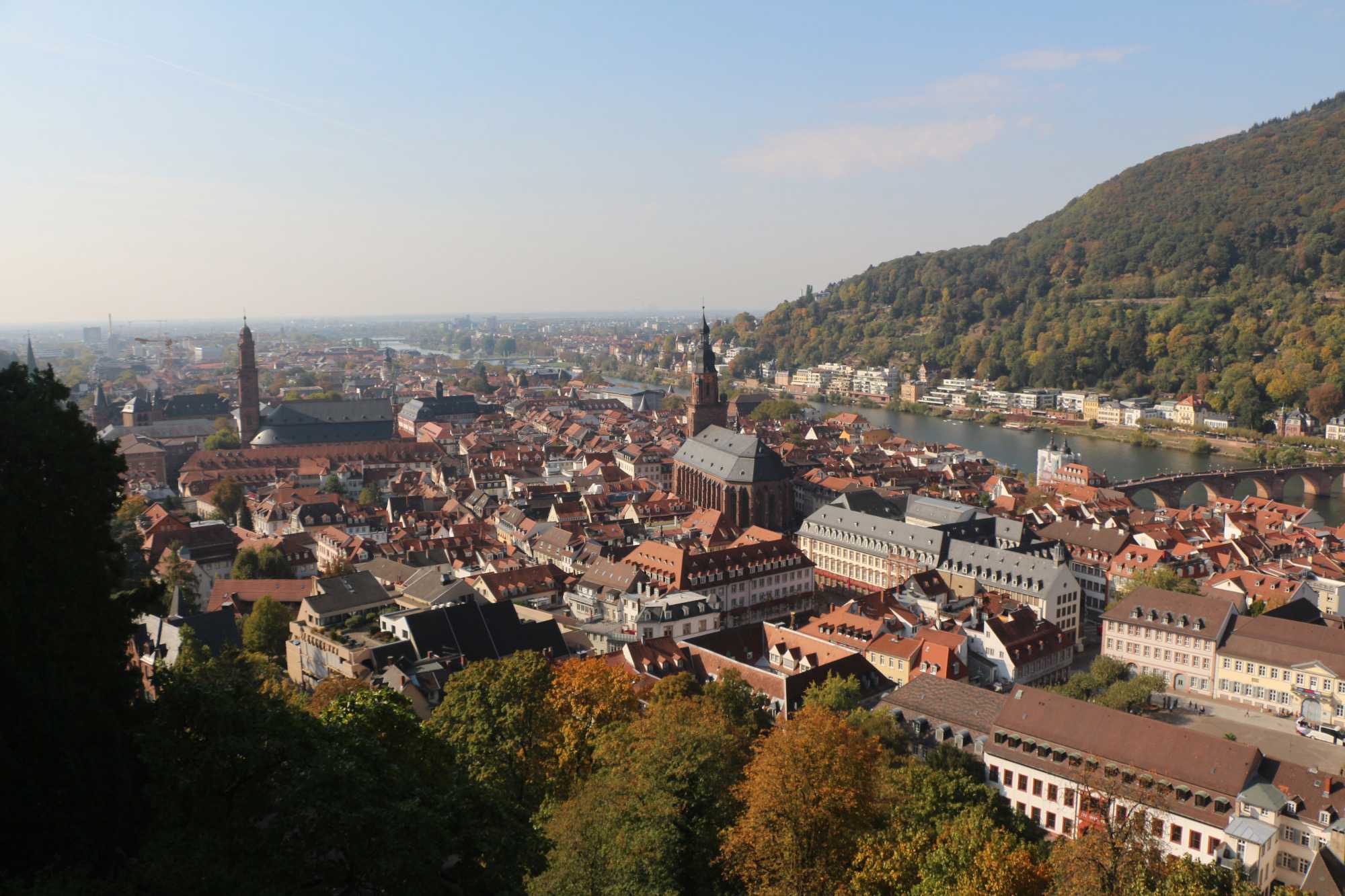 Après cette belle visite, nous retournons à l’autocar jusqu'à la Neckarmünzplatz, place importante dans le centre historique de Heidelberg. Elle se situe directement au bord du Neckar, au-dessous du château. Nous continuons en compagnie de notre guide par la visite de la vieille ville. Nous admirons l'église du Saint-Esprit construite entre 1398 et 1441, lieu de sépulture des princes-électeurs. Les nefs abritaient la "Bibliotheca Palatina" jusqu'en 1623. Puis, nous avons un peu de temps libre pour faire un peu de magasinage sur la plus longue rue commerçante d'Allemagne avant de rejoindre le car pour retourner au bateau. La ville d'Heidelberg est une des villes où la population est très jeune. C'est une des villes universitaires les plus populaires d'Allemagne et compte près de 40 000 étudiants.