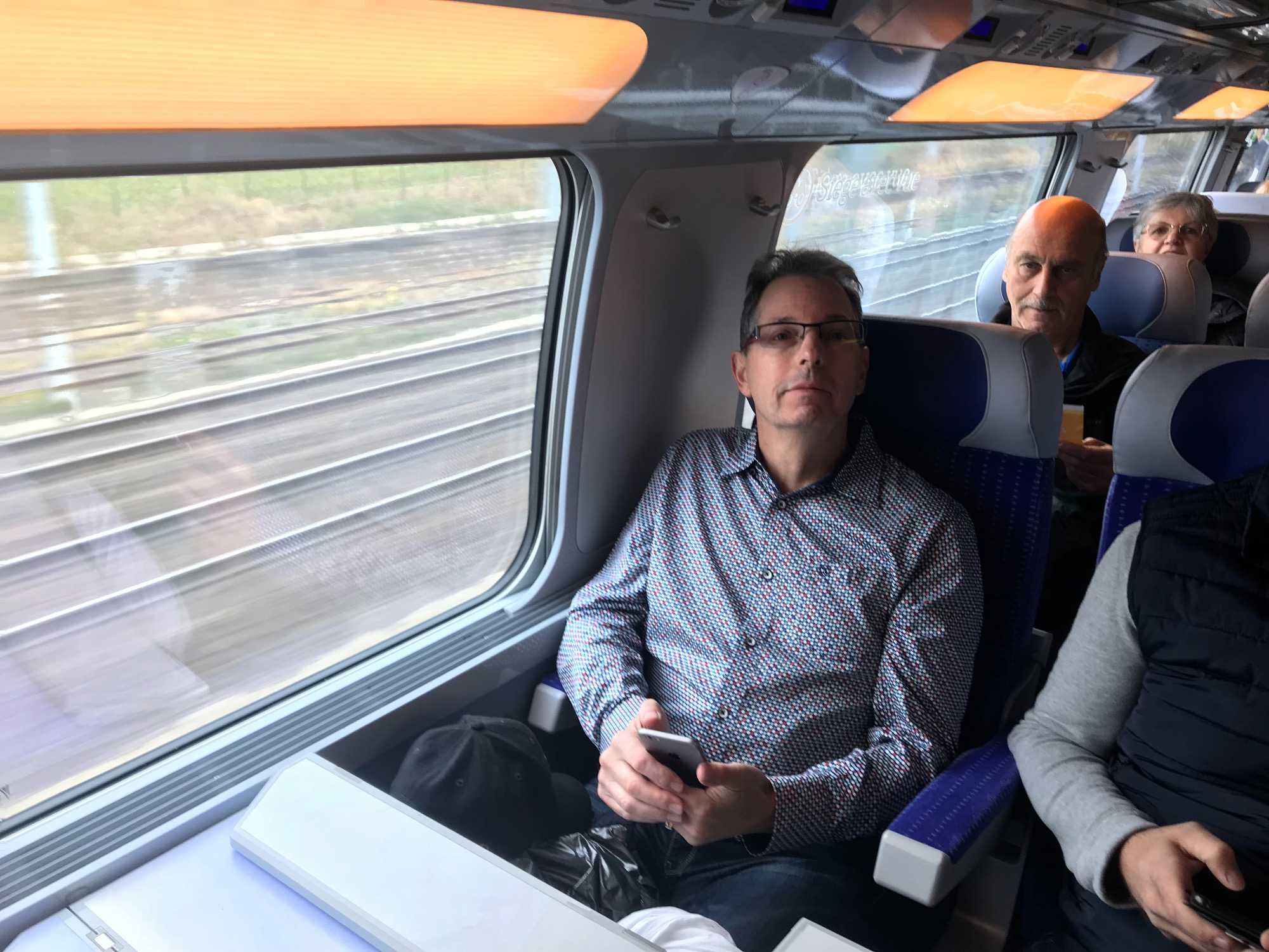 Nous voilà embarqués dans notre wagon de train en direction de Paris. C’est notre dernière grande randonnée en train de ce voyage. Pour plusieurs d’entre nous, c’est le premier voyage en TGV et l’excitation est ressentie. Le train est à l’heure et nous filons à vive allure vers Paris (environ 300km/h). Un trajet d'1h45, alors qu’en voiture, ce serait un voyage de 500 km et 5h de route! Quelle belle invention que ce TGV!