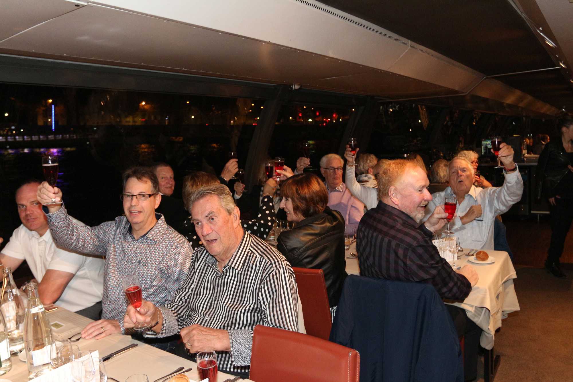 Puis, on se prépare pour ce qui sera l’apothéose du voyage! Rien de moins qu’un souper-croisière sur La Seine. Mais pas n’importe quel souper-croisière… un souper-croisière à la Louise Drouin! En effet Louise Drouin nous a réservé une belle surprise en choisissant les tables près des fenêtres, la coupe de champagne en apéritif, une sélection de vins fins pour accompagner notre repas, le dessert… Boissons incluses, festin, nous avons droit à la totale! Et ce, sous un magnifique ciel étoilé. Nous sommes vraiment choyés. La croisière nous fait faire un tour de la ville illuminée par tous ces monuments, dont bien sûr la célèbre Tour Eiffel.