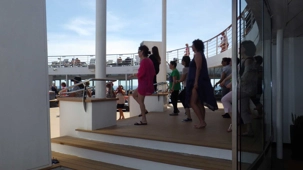 Nous avons une superbe journée c’est très beau et chaud, ça roule entre 27 et 32 degrés. Il fait tellement beau que je ne pense pas revenir au Québec bientôt. Je pense à faire un stage pour croisière, sur ce magnifique navire… Oups ! je rêve un peu, désolé.