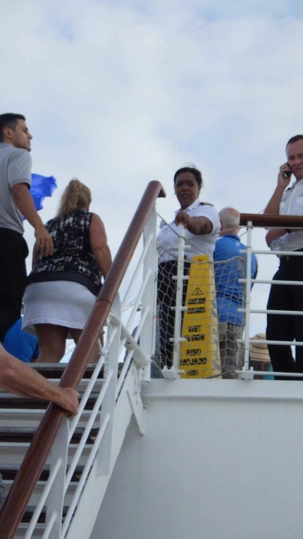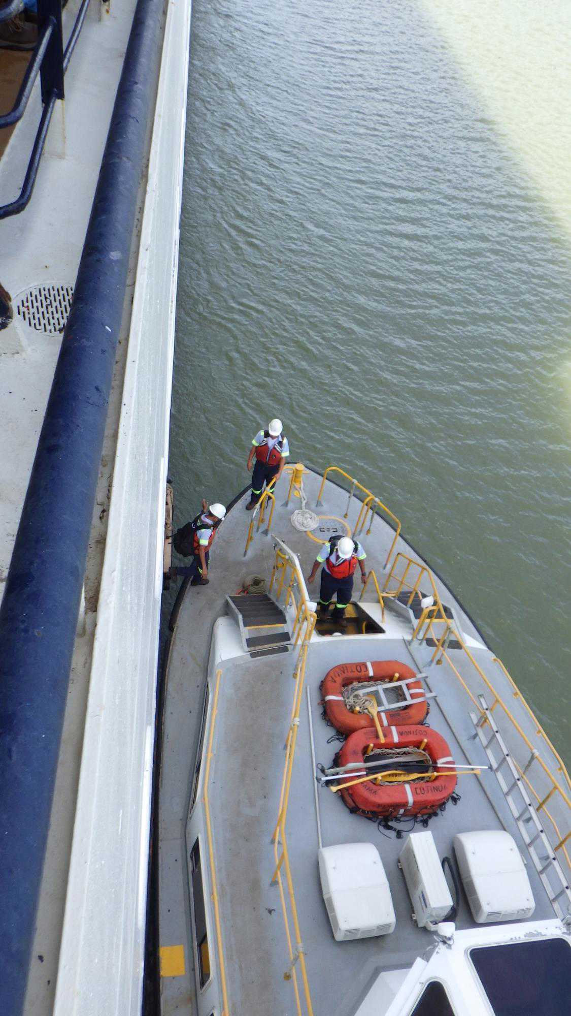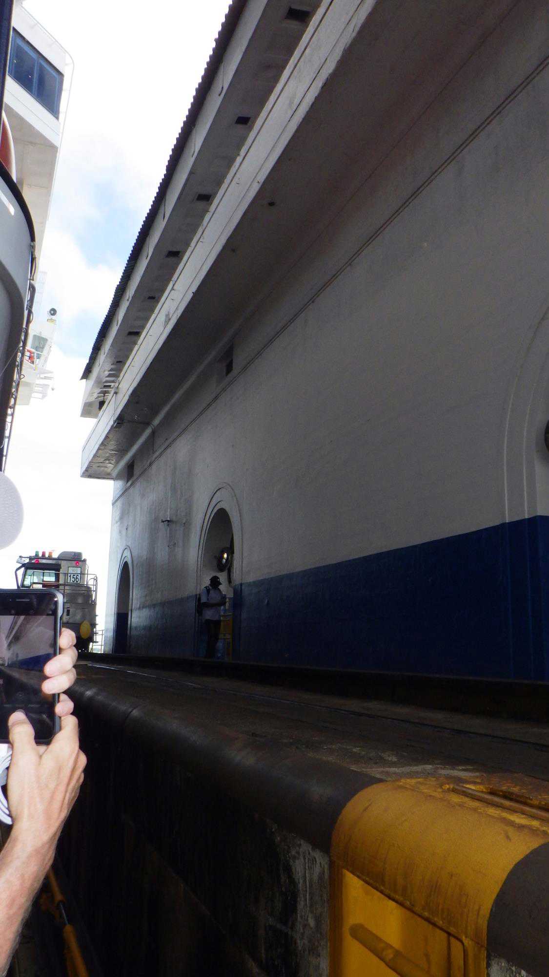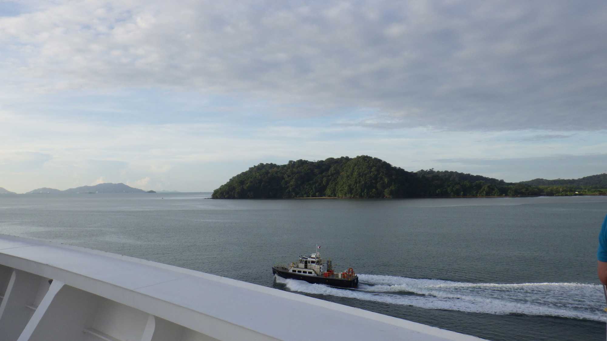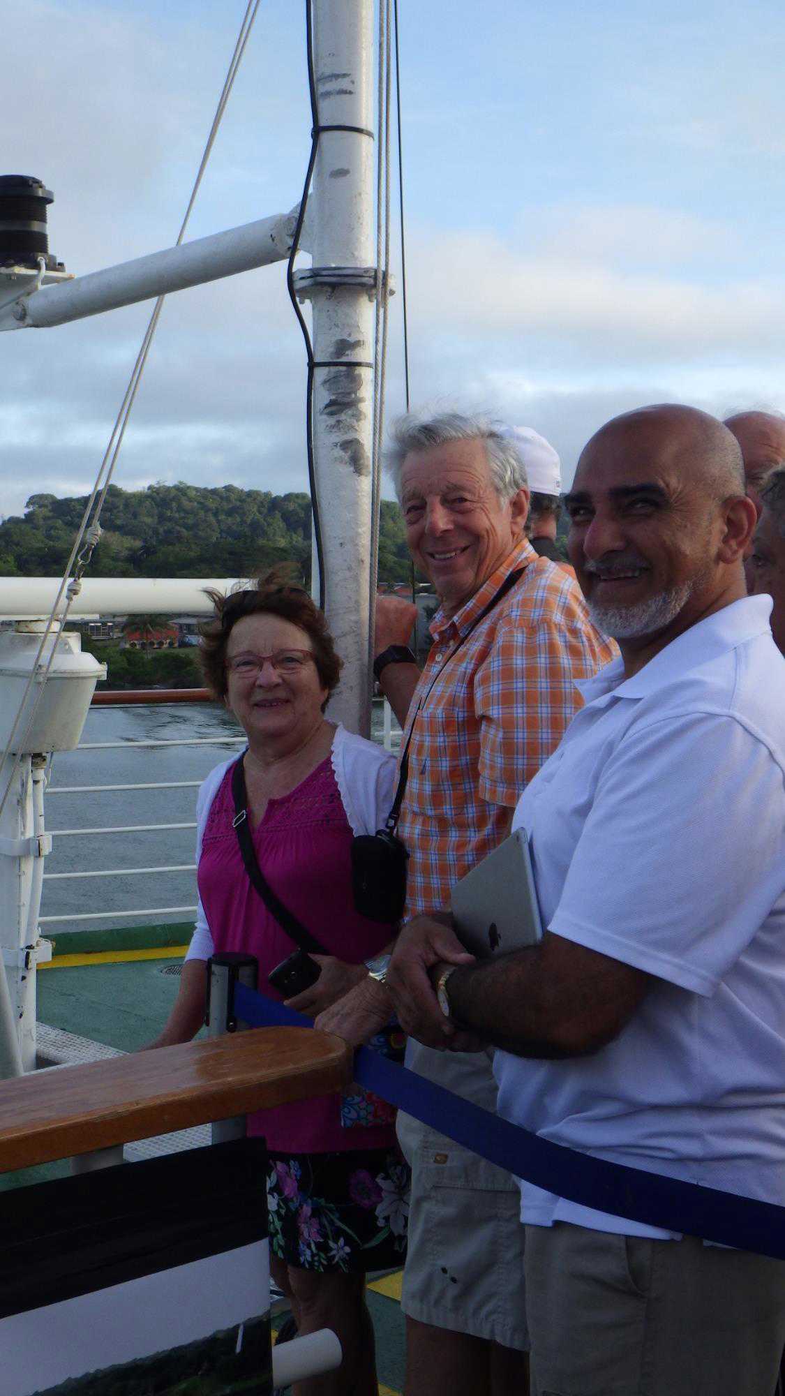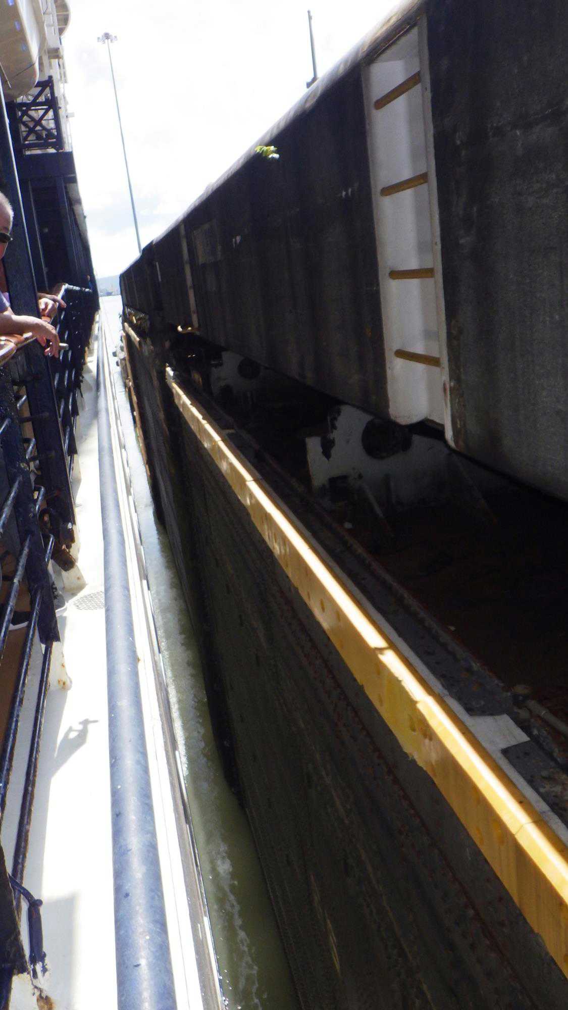 Déjà à 6 h 00 ce matin il y avait de l’effervescence sur le navire. Plusieurs de mes voyageurs étaient à l’extérieur. Ce matin le navire est arrivé à Balboa à 6 h 30, ensuite le pilote est monté à bord pour se présenter à la première étape du canal, soit à l'écluse Miraflores à 8 h 30. Peu de temps après, nous sommes entrés dans l’écluse Pedro Miguel vers 9 h 40. Par la suite, après un parcours de plusieurs milles, nous sommes entrés dans le passage de Gamboa et Gatun Lake. À 14 h 00, l’écluse de Gatun nous attendait, pour ensuite sortir dans l’Atlantique à Cristobal vers 16 h 50. Tout au long de la journée, il y a eu un commentateur pour nous donner des explications sur le canal. Nous avons donc admiré le processus du passage des écluses, une après l’autre. Il faut dire que nous avons été le seul navire de passagers à traverser le canal et que les autres navires n'étaient pas aussi beaux que le nôtre, mais peut-être plus colorés avec tous leurs conteneurs.